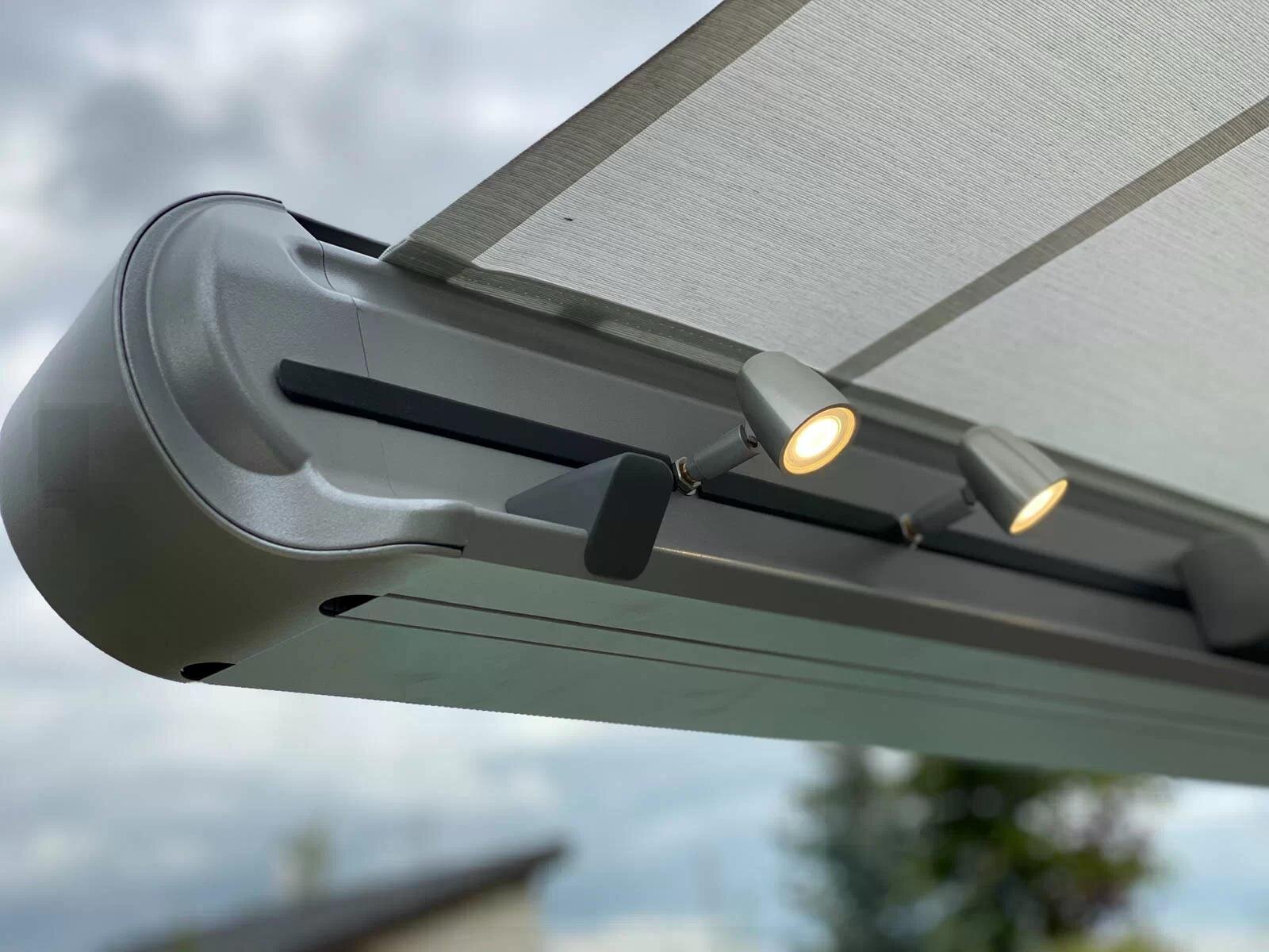 Pokud chcete terasu využívat i po setmění, jedním z nejlepších doplňků je LED osvětlení markýzy. Jde o elegantní a zároveň velmi praktické řešení, které je integrované přímo do konstrukce.