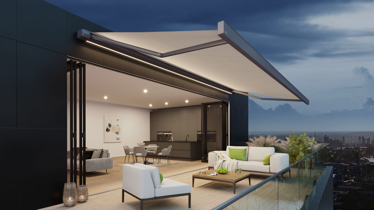 LED osvětlení markýzy pro večerní atmosféru na terase