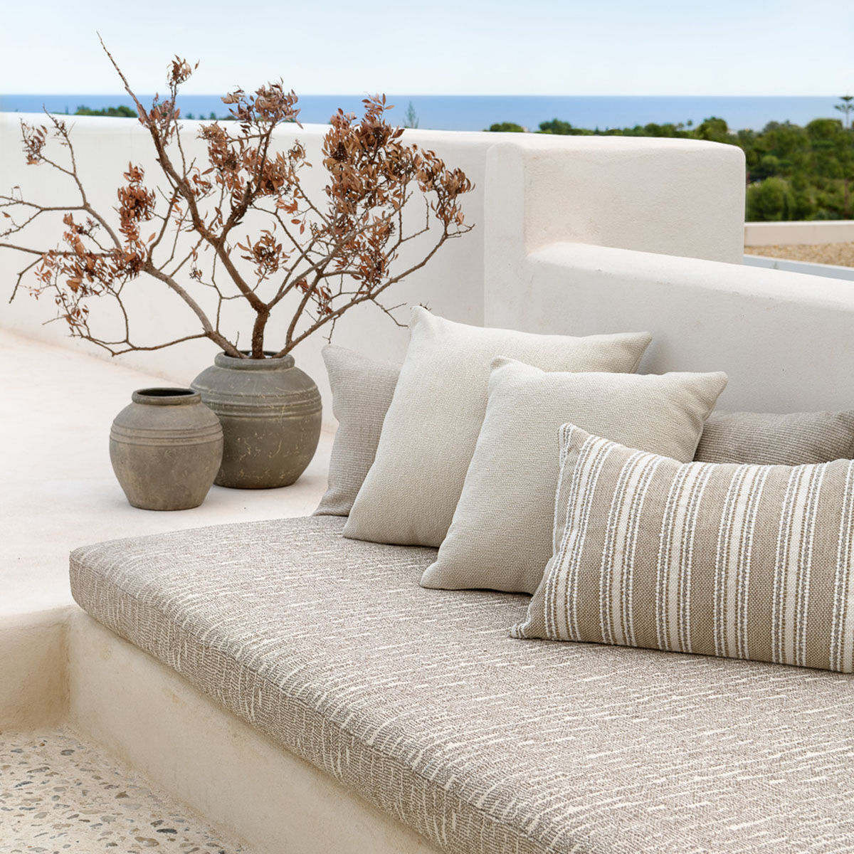 Váš venkovní prostor si zaslouží víc než jen židle a stůl. To, co z terasy nebo balkonu dělá skutečně příjemné místo pro život, nejsou jen kusy nábytku, ale atmosféra. A tu vytváří doplňky – promyšlené, krásné a funkční. Venkovní textilie, decentní stínění, světla nebo koberce propojí váš exteriér s interiérem. Vytvoří pocit útulnosti a pohodlí. A hlavně: umožní vám užívat si venku víc času – od rána do pozdního večera.