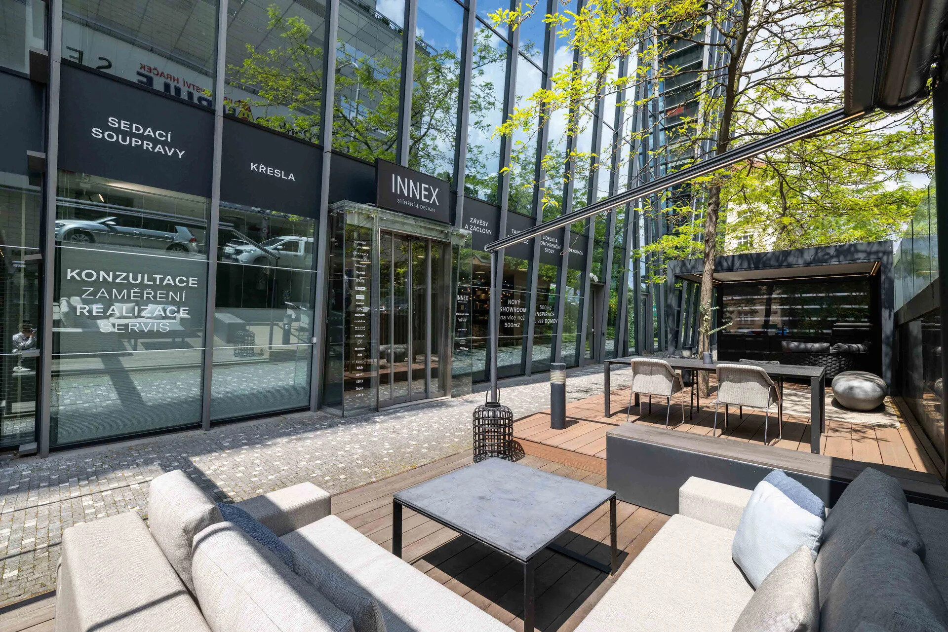Výhodou INNEX je schopnost propojit interiérové i exteriérové řešení pod jednou střechou.