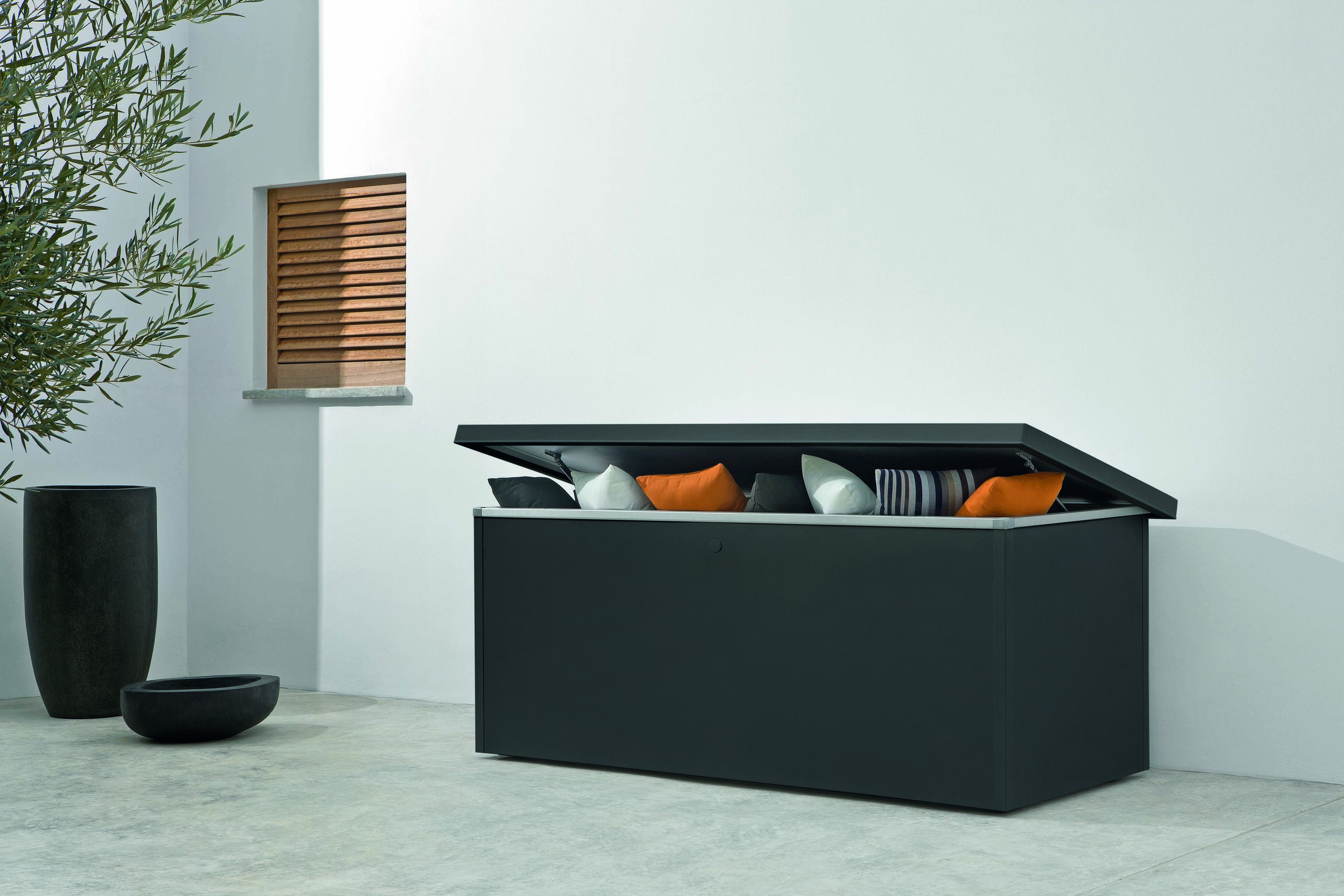Pro polštáře a další drobné příslušenství jsou skvělé úložné boxy, díky kterým zůstanou v bezpečí před vlhkostí a prachem. Vyplatí se rovněž přemýšlet o správném umístění nábytku – čím méně přímého slunečního záření a deště na nábytek dopadne, tím déle vám vydrží.