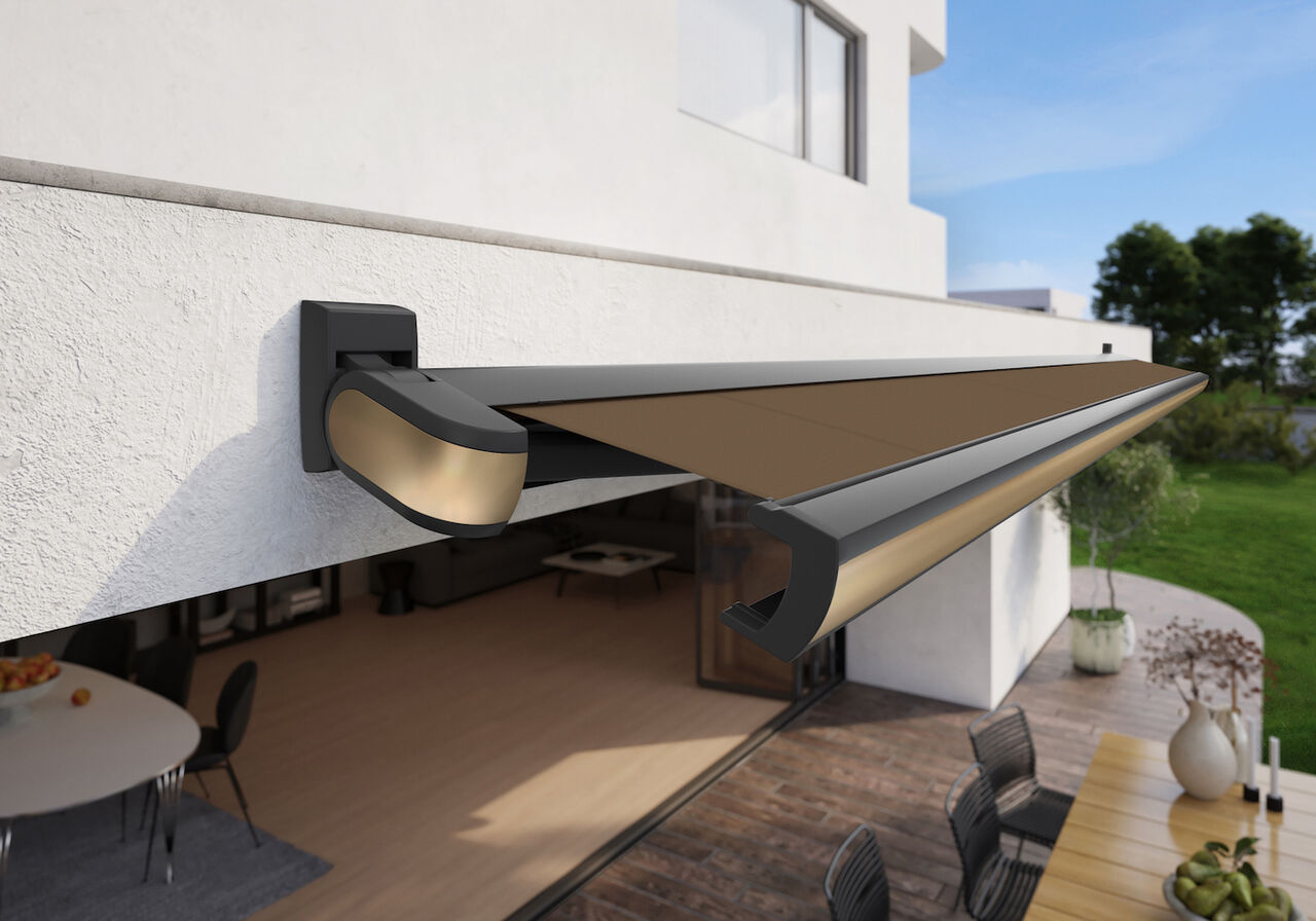 Vlajková loď značky Markilux. Markýza, která kombinuje velkorysé rozměry, technologii a výrazný design.