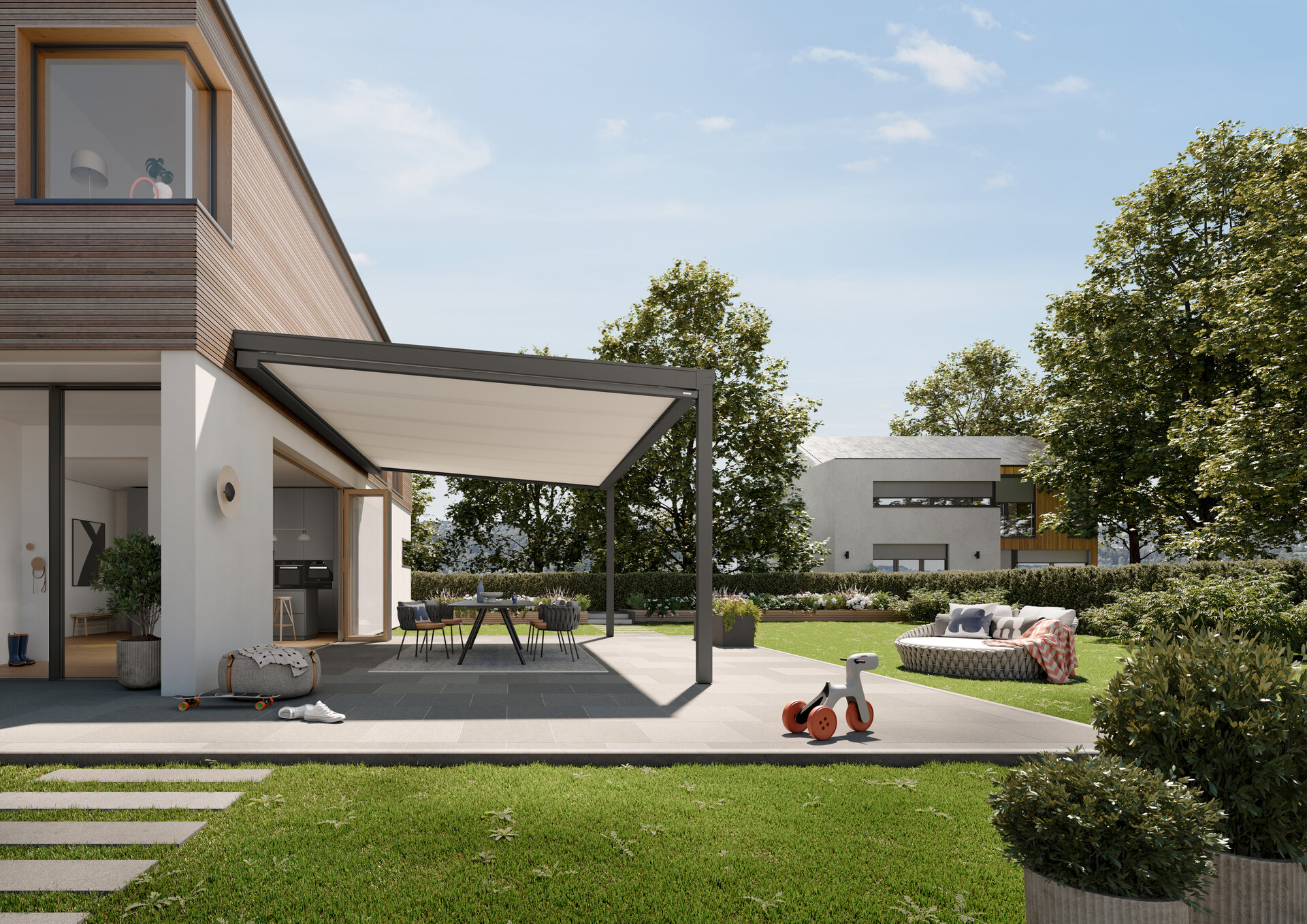 Nový vzhled bez stavebních zásahů – jedinou změnou látky můžete terasu sladit s novým stylem domu nebo zahrady.
