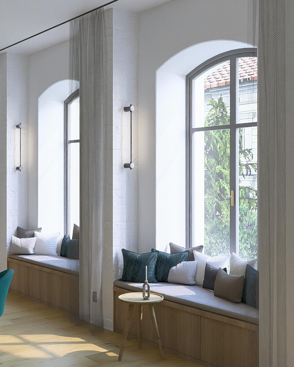 V interiéru byly zachovány původní konstrukční prvky – masivní nosné sloupy a velkoformátová okna, která odkazují na industriální historii budovy. Tyto architektonické detaily se staly základem návrhu, jenž propojuje moderní interiérový design s industriální estetikou a osobním charakterem.