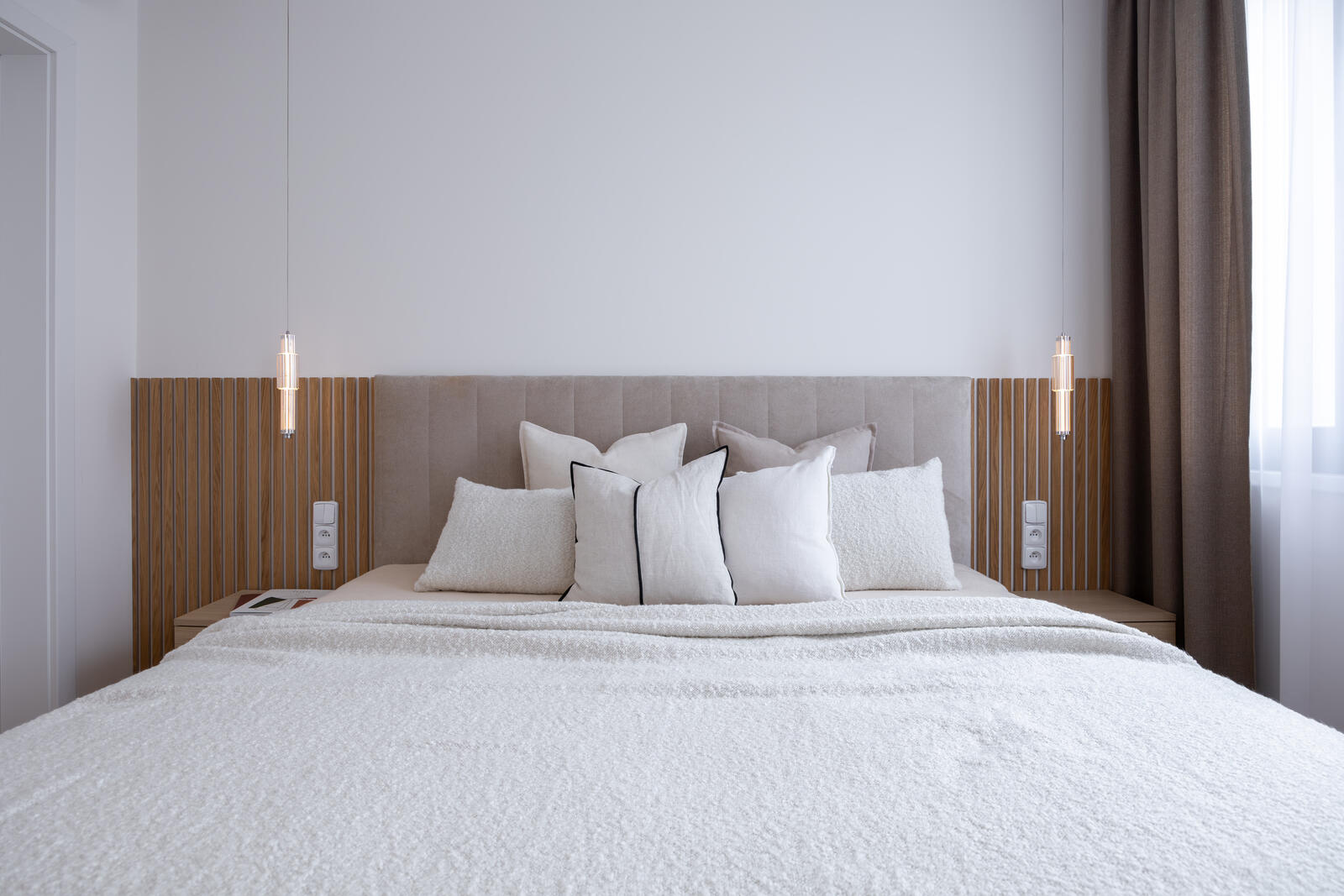 Výsledkem je harmonický celek, kde se minimalistická estetika pojí s útulností a kvalitním řemeslným zpracováním.