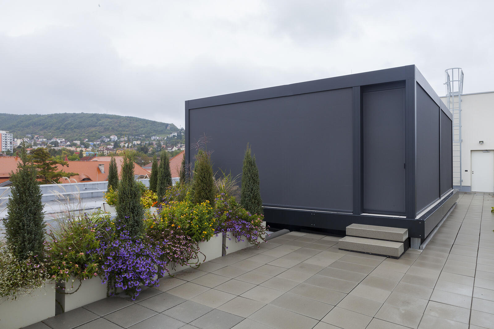 „Chtěli jsme vytvořit prostředí, kde se budou zaměstnanci cítit dobře při práci i odpočinku. Kombinace kvalitního stínění a designového nábytku umožňuje využít střešní prostory naplno po celý rok.“