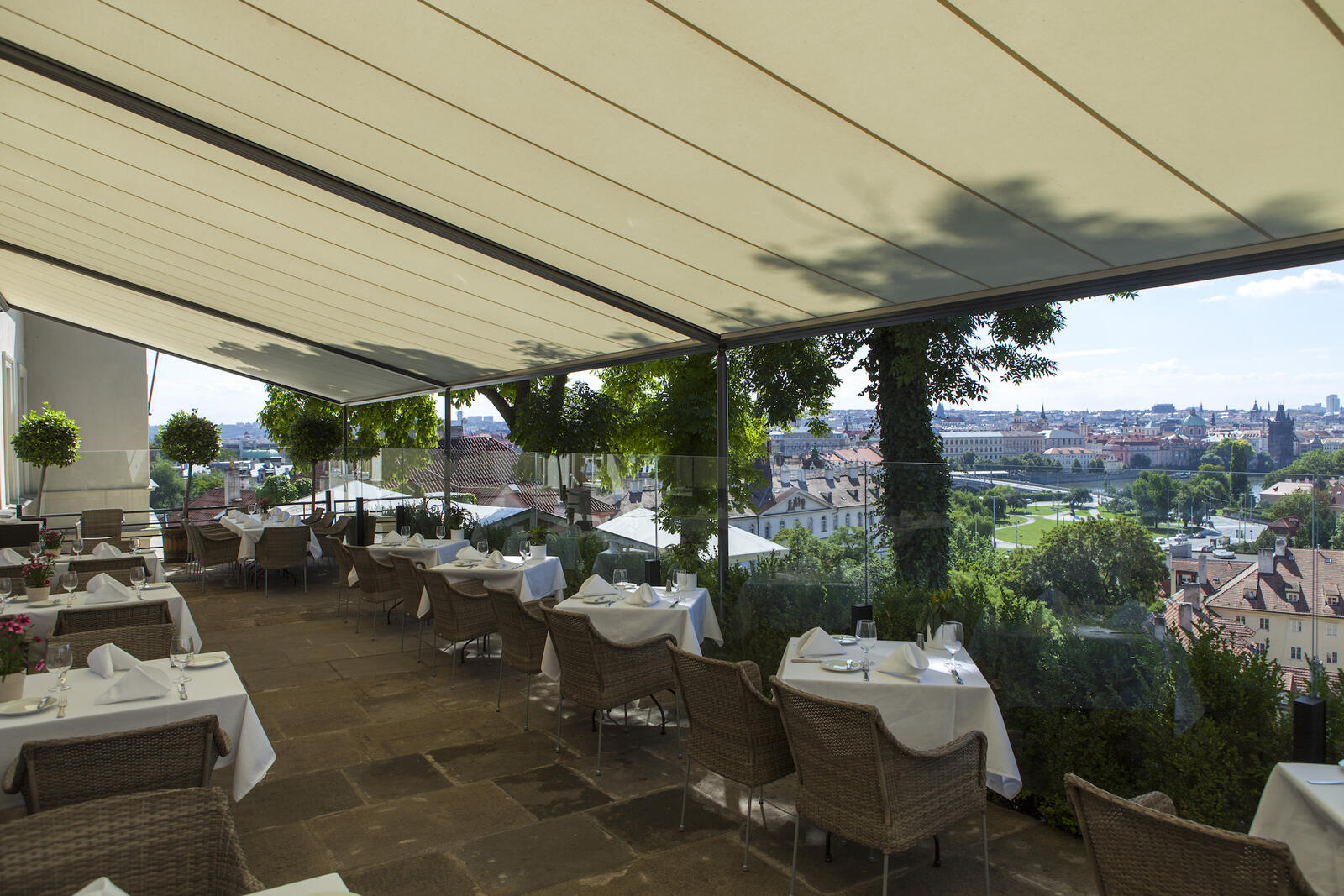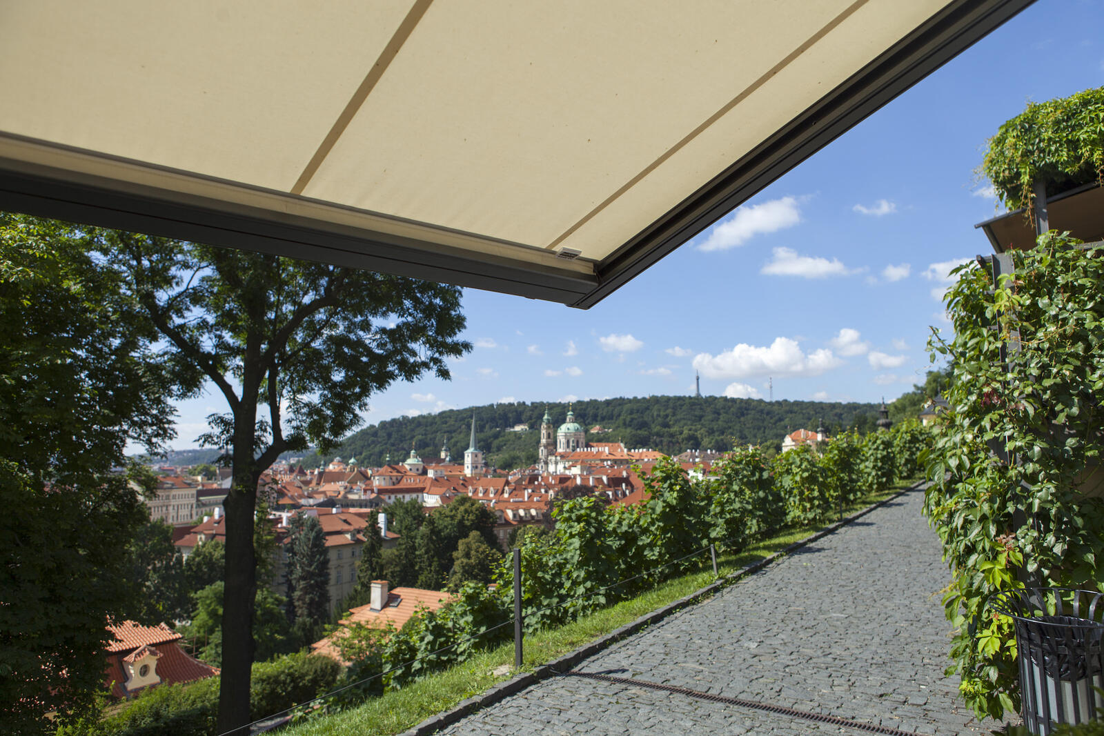 Na terase restaurace Villa Richter jsme realizovali instalaci látkové pergoly Markilux. Tento systém poskytuje spolehlivou ochranu proti slunci, dešti i větru a zároveň nenarušuje atmosféru prostoru, který je pro hosty jedinečný díky své poloze přímo nad pražskými vinicemi.