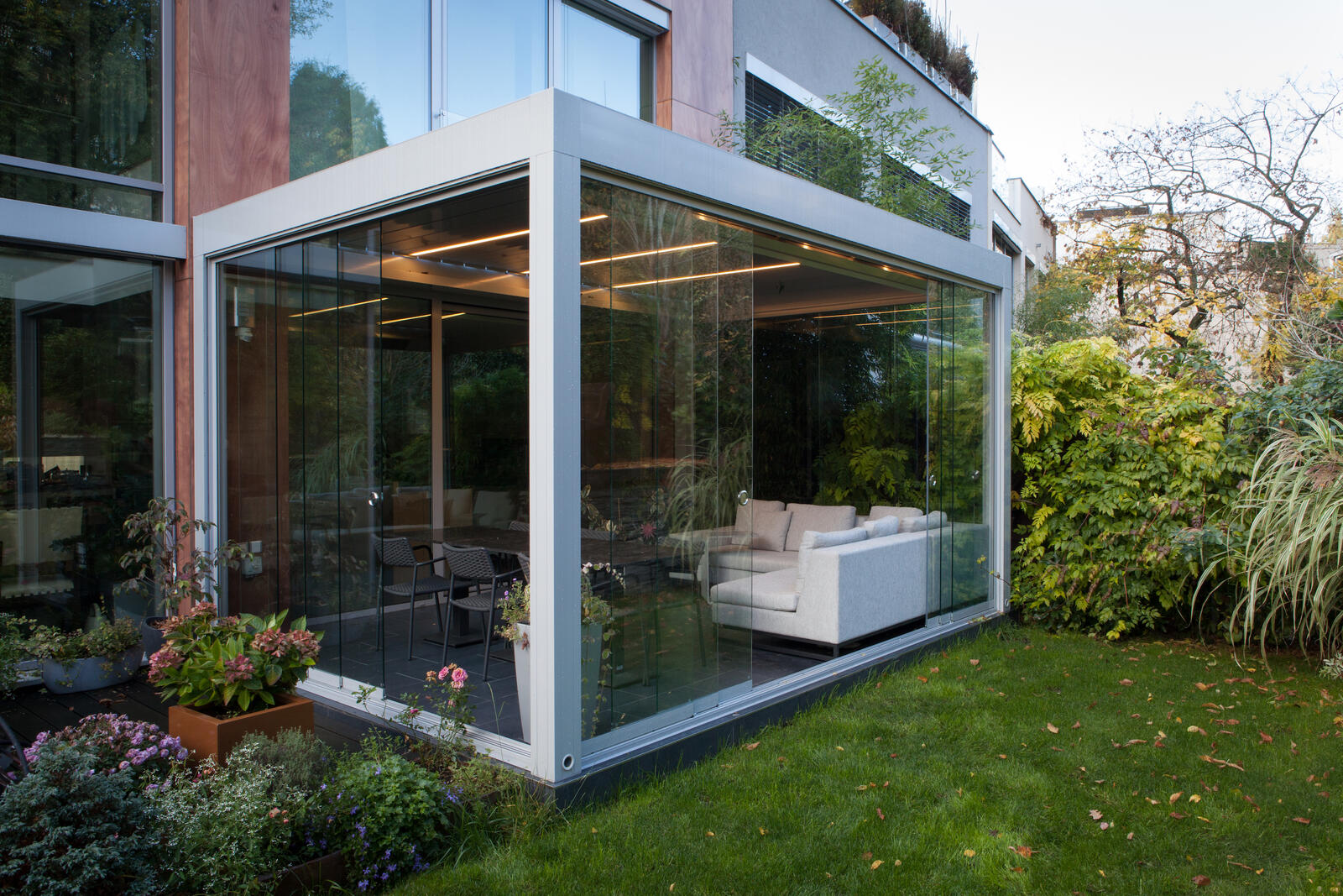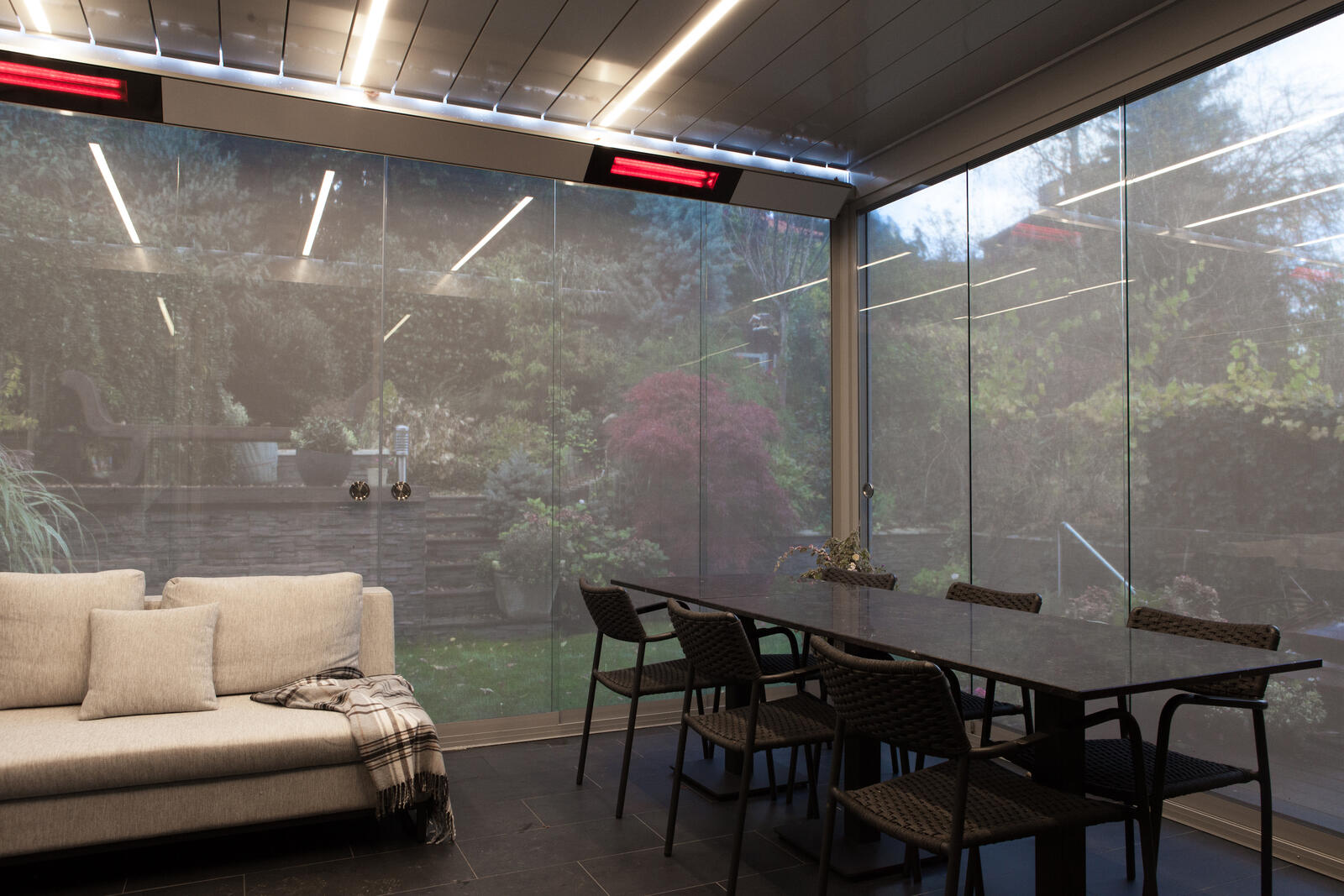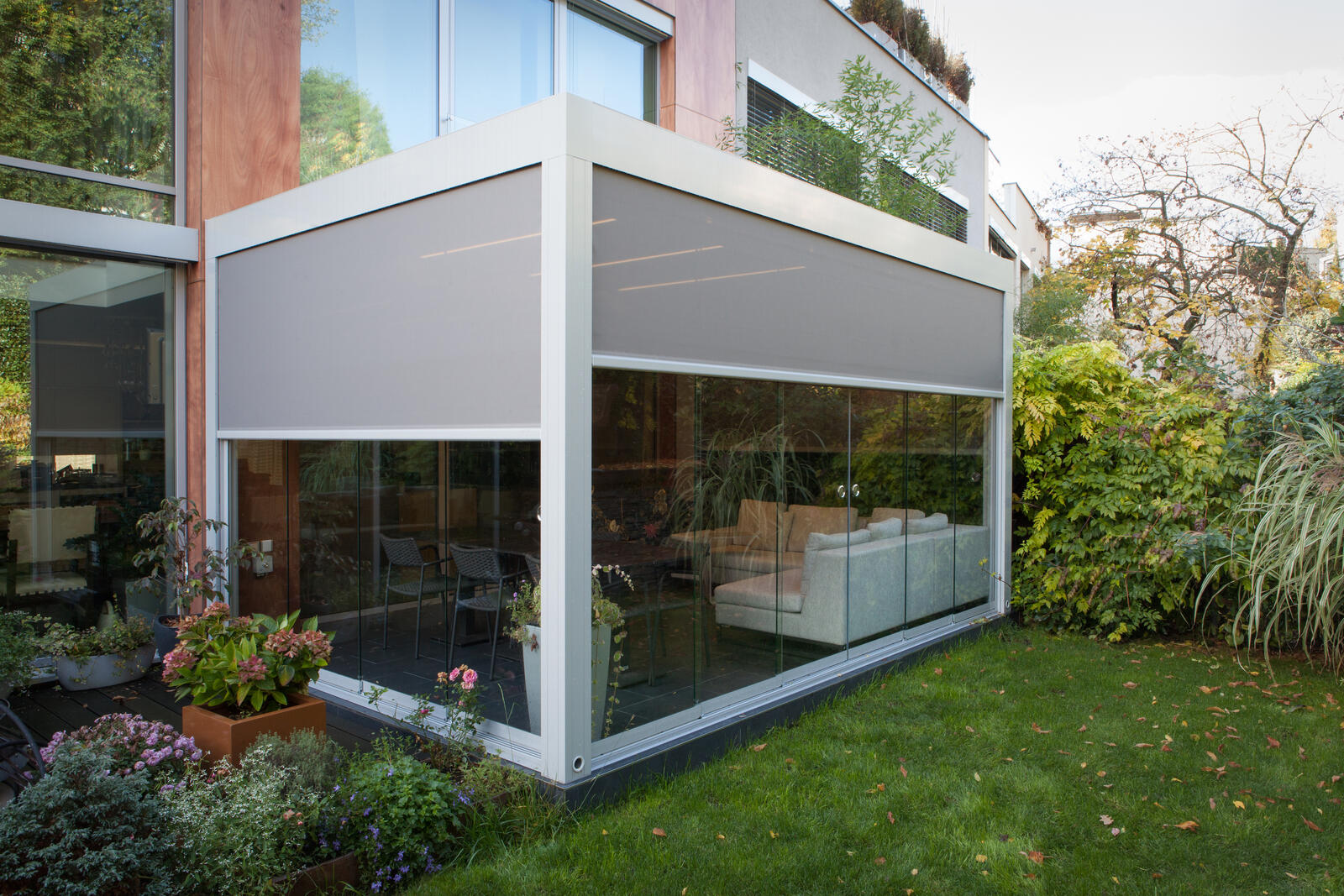 Pergola Renson Camargue přetvořila část zahrady v plnohodnotný obytný prostor.