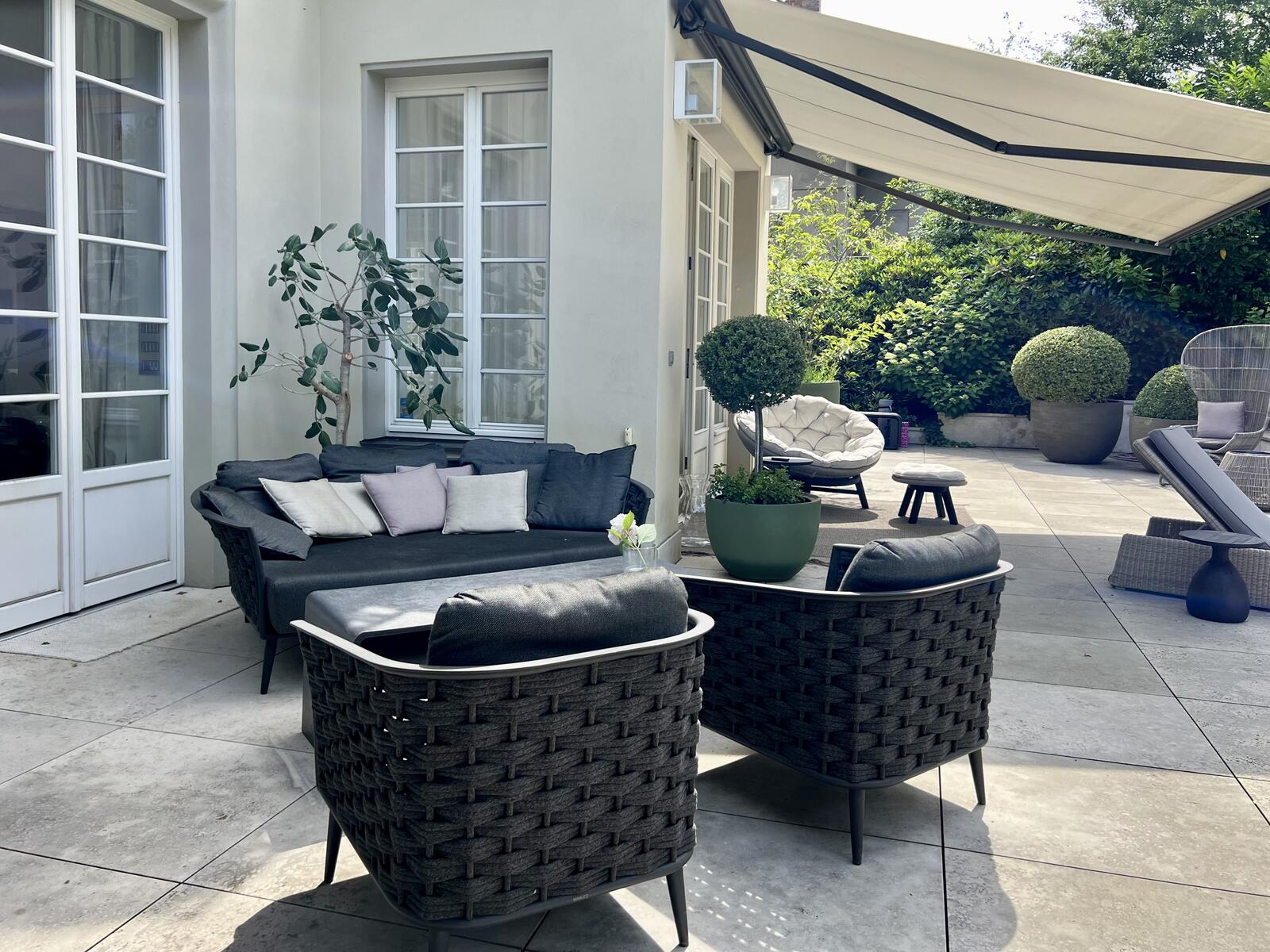 Terasa rodinné vily s vrstveným stíněním a nábytkem