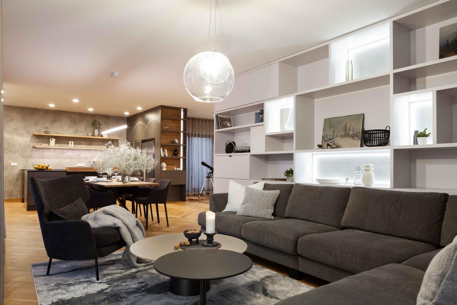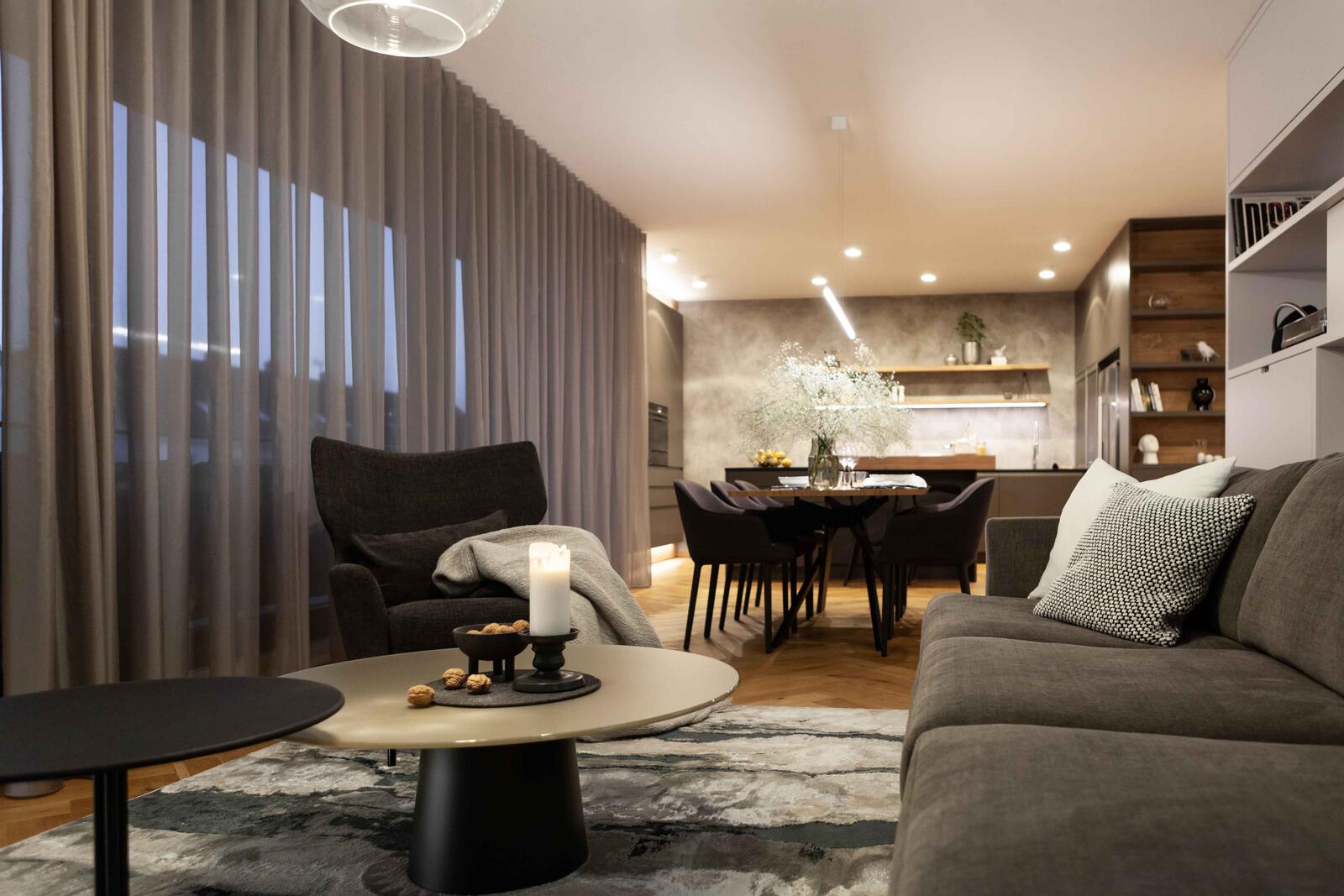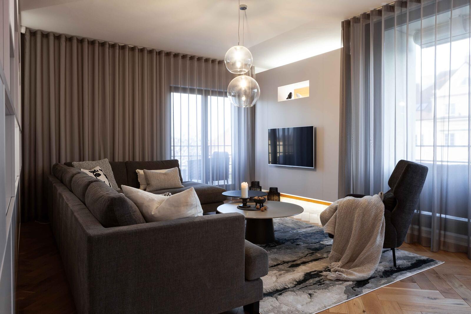 Ve spolupráci se Sotheby’s International Realty jsme vybavili byt v nově zrekonstruované vile Peroutkova z 30. let. Projekt zahrnoval kompletní návrh a řešení interiéru – od nábytku přes stínicí techniku až po textilie. Cílem bylo vytvořit prostor, který navazuje na historický charakter domu, ale zároveň působí moderně, útulně a harmonicky.