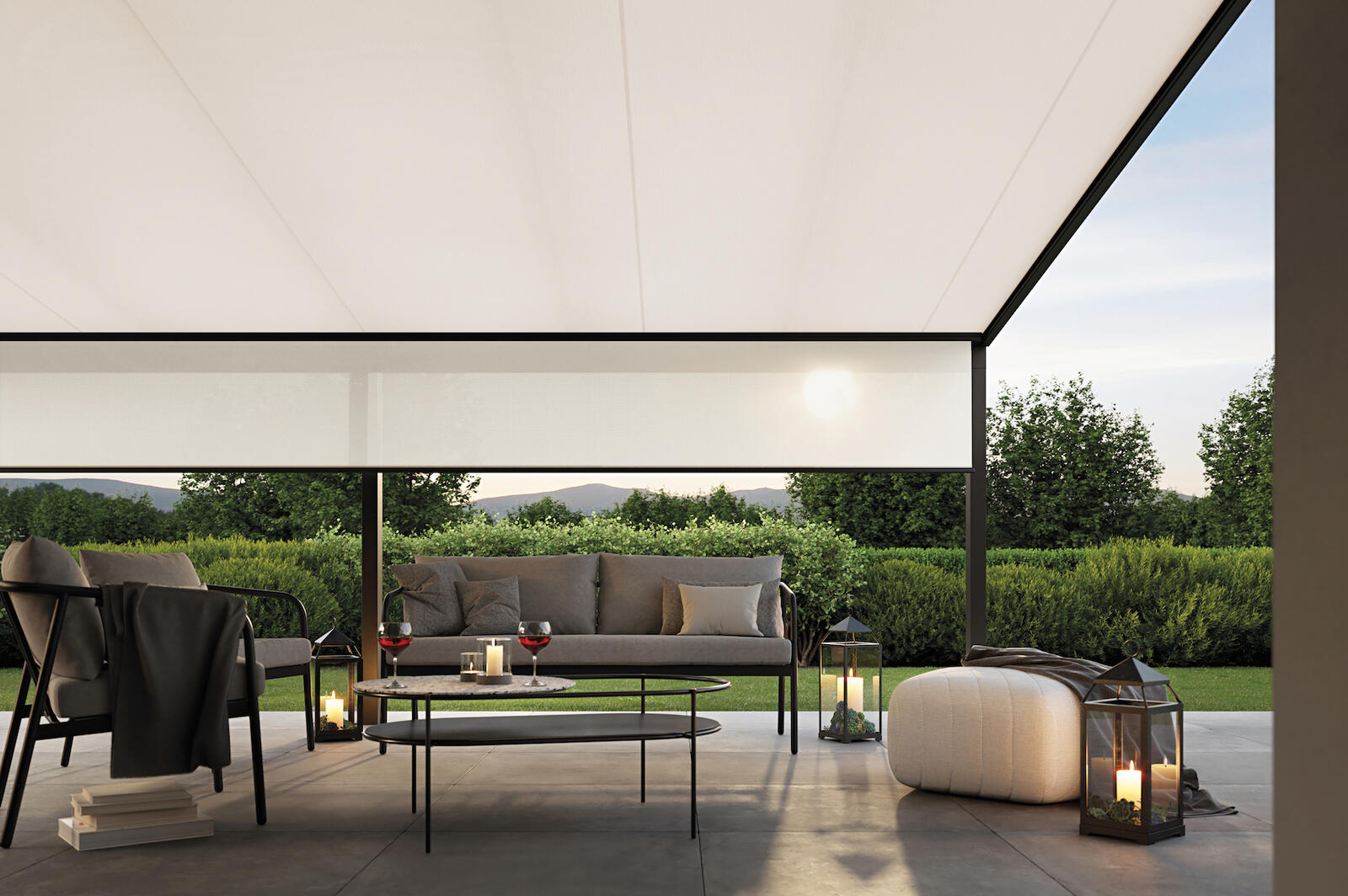 Model Markilux 779 je perfektním řešením pro ochranu menších ploch před sluncem. Své využití najde jak na dřevěné, tak hliníkové pergole s prosklenou střechou. Roleta se instaluje pod sklo a chrání tak před sluncem a přehříváním pod pergolou. Látka je vedena v systému tracfix, který napíná látku a chrání jí před silným větrem. Model 779 lze vybavit širokým spektrem doplňků z kolekce Markilux.