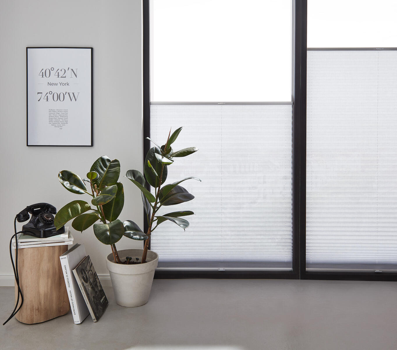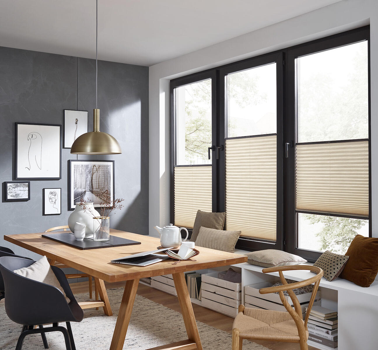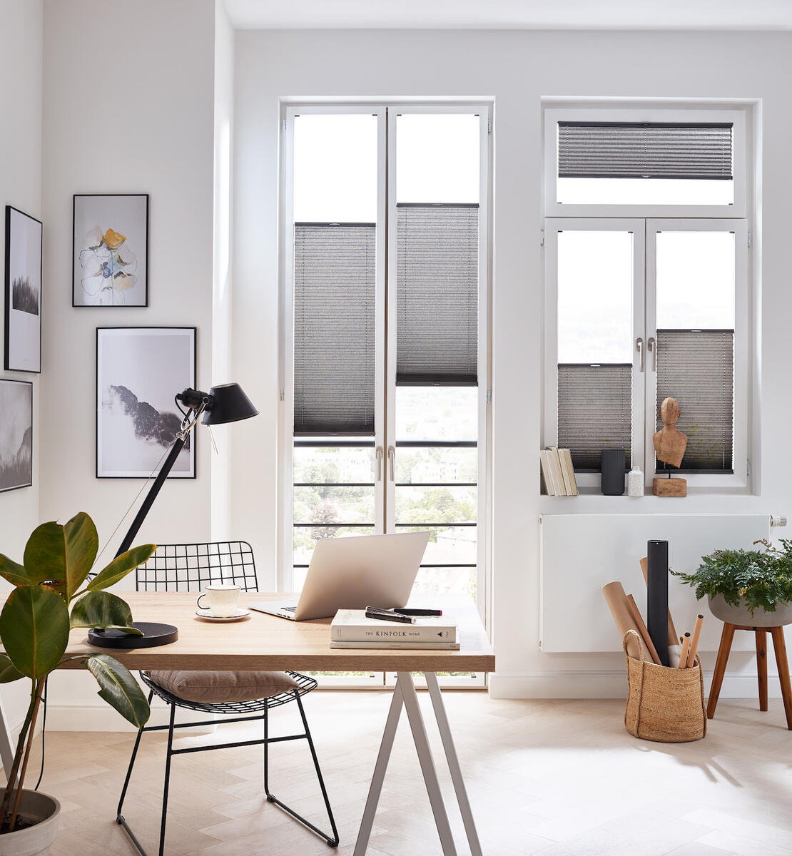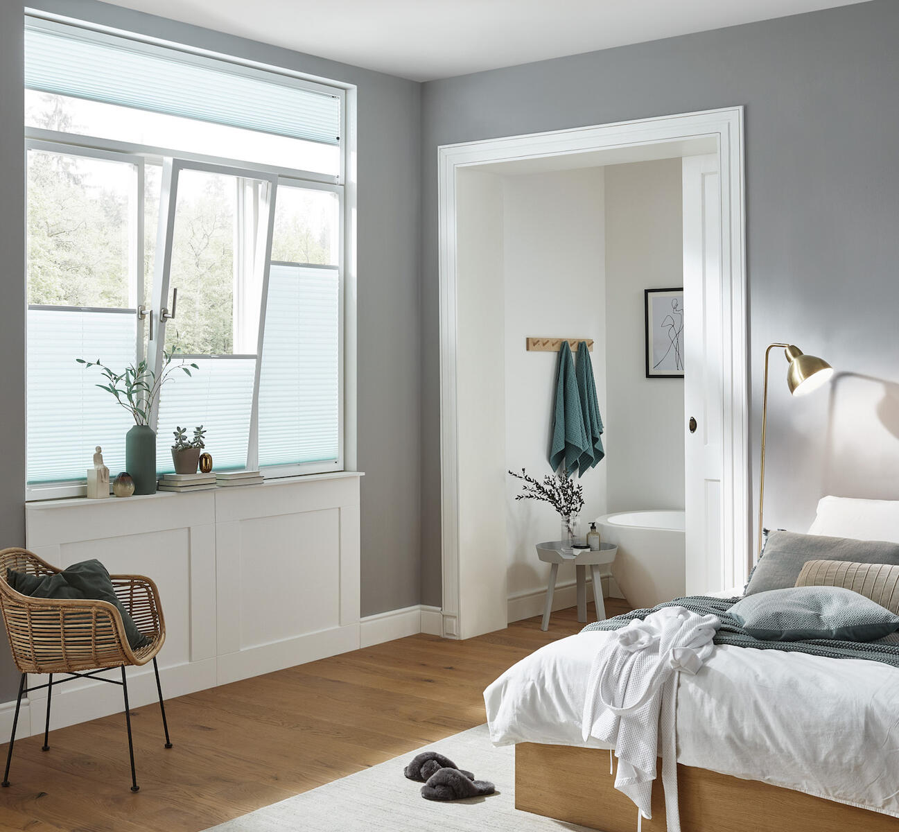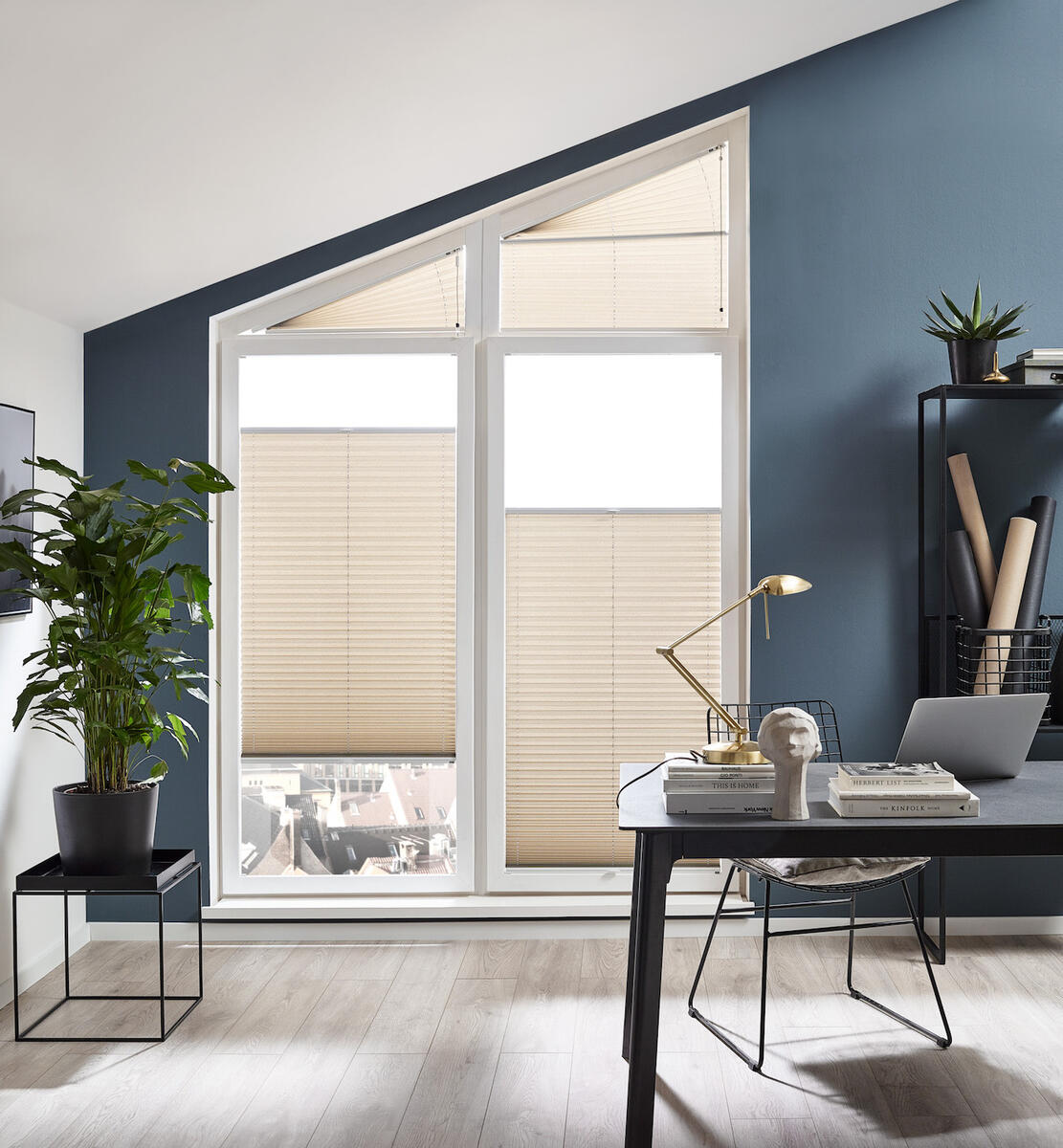 Plisovaná roleta z jednoduché látky, ideální pro montáž do zasklívací lišty.