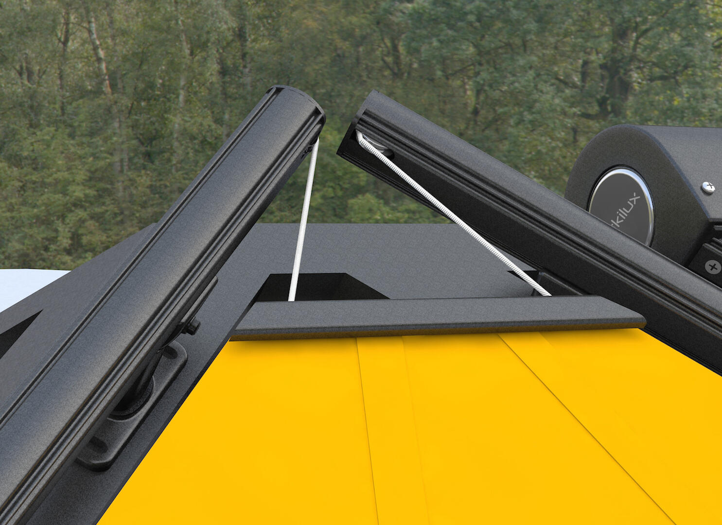 Látková roleta Markilux 893 je vhodným řešením pro krytí trojúhelníkových oken či otvorů. Látky rolety je krytá v robustní kazetě, která je opatřena kartáčky pro ochranu před nečistotami. Napínací systém je vybaven vysoce odolnými tažnými lany a plynovými vzpěrami, které zajišťují optimální vypnutí látky. Vybírat můžete z látek Markilux, nebo screenových látek Soltis.