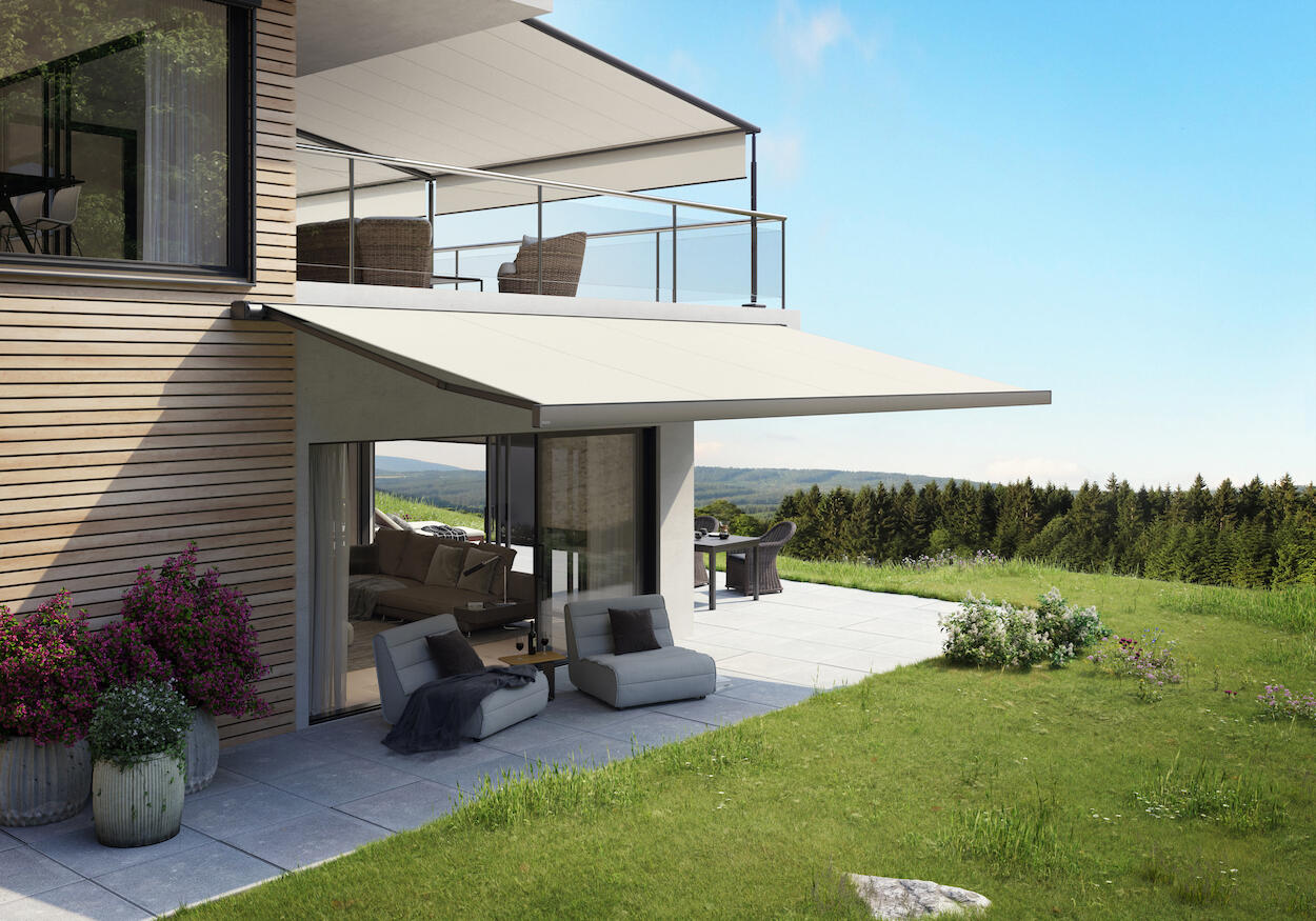 Jednoduchý a zároveň líbivý design, který nenarušuje vzhled fasády - to je naše nejprodávanější kazetová markýza Makrilux 970.