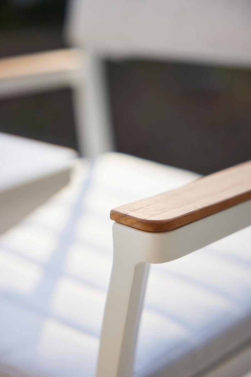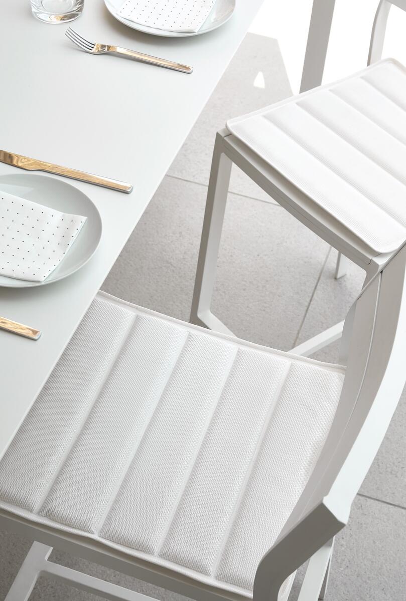 K dispozici v nadčasových barvách. Židle se snadno kombinuje s různými venkovními stoly a barovými pulty. Pro větší pohodlí lze židle doplnit o volitelný sedák z voděodolné látky, která je odolná proti UV záření a poskytuje maximální komfort i při dlouhém sezení.