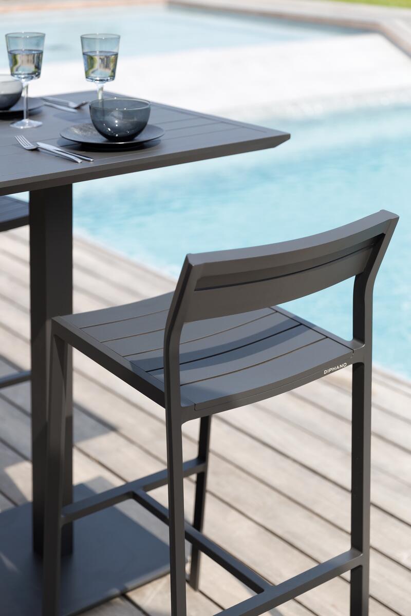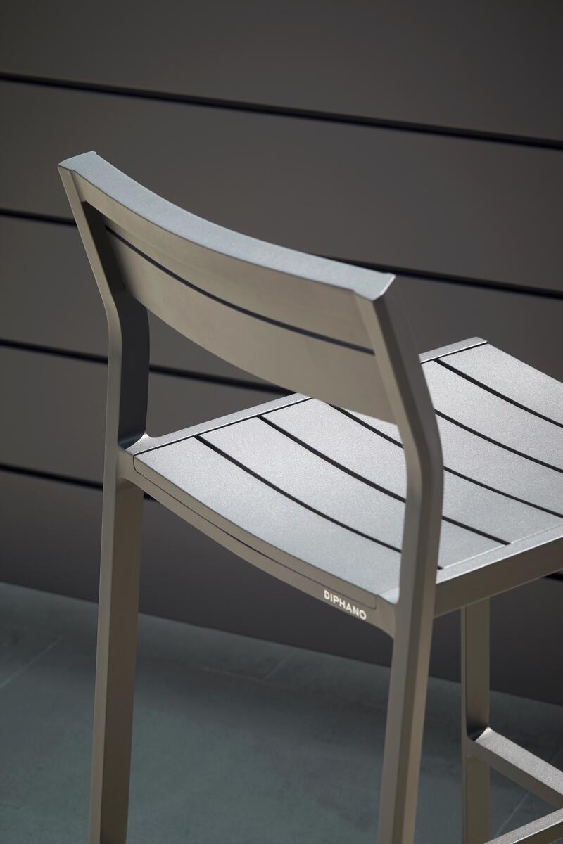 Venkovní barová židle Metris je ideální volbou pro venkovní bary, terasy a zahradní kuchyně, a to ve dvou variantách – s výškou sedáku 78 cm pro standardní barové stoly a pulty nebo 62 cm pro středně vysoké pulty a kuchyňské ostrůvky. Oba modely vynikají minimalistickým designem a kvalitními materiály. Lehký, ale pevný hliníkový rám s práškovou úpravou je odolný proti povětrnostním vlivům, korozi a zajišťuje dlouhou životnost.