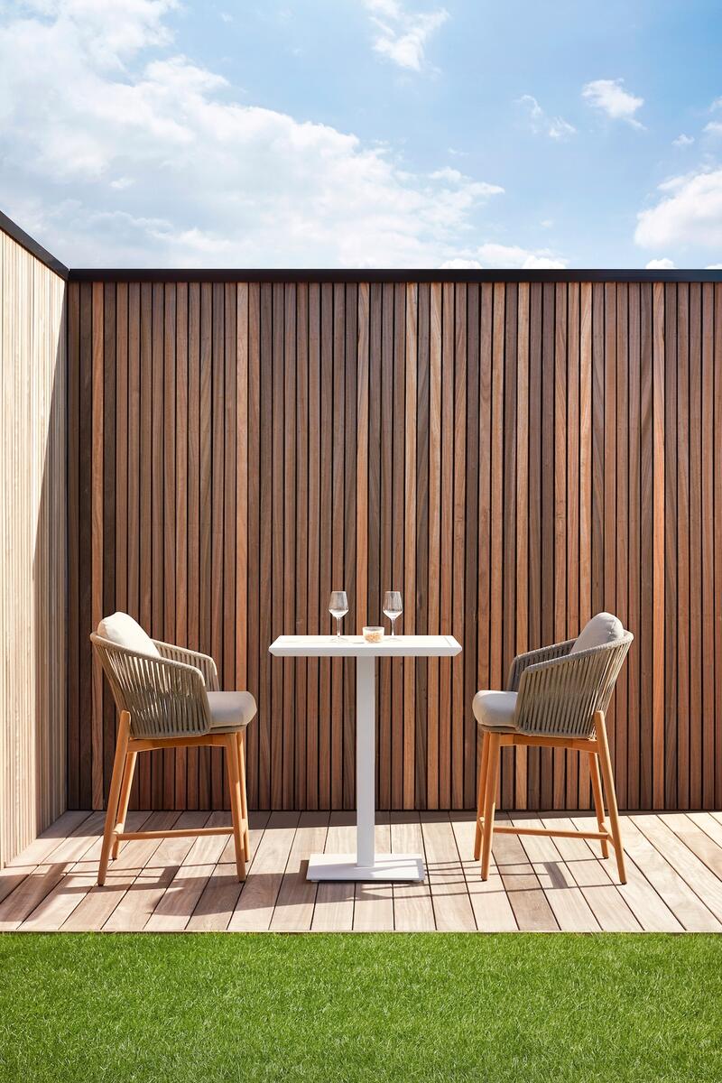 Díky výšce sedáku 61 cm je ideální k nižším barovým stolům nebo kuchyňským ostrůvkům v exteriéru i interiéru.
