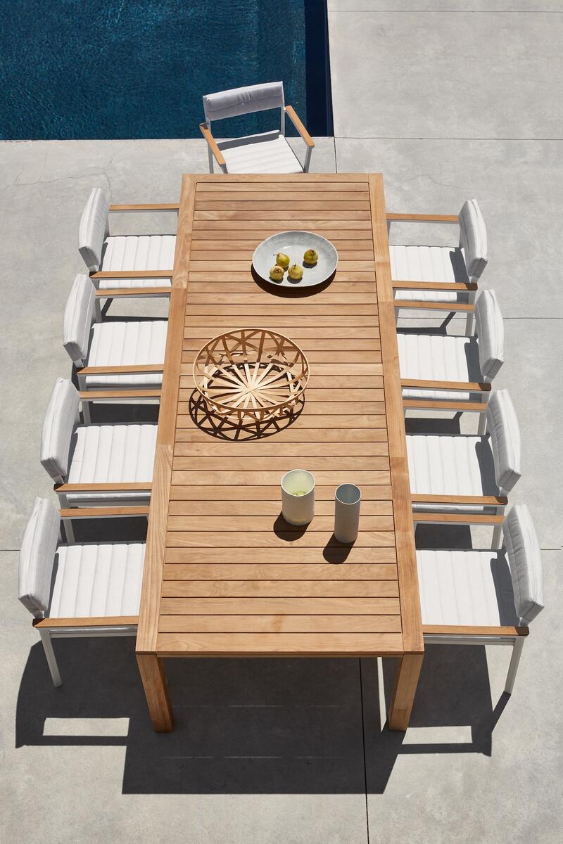 Díky odolnosti teakového dřeva vůči povětrnostním vlivům a správné údržbě vám stůl Natural bude skvělým společníkem po celý rok.