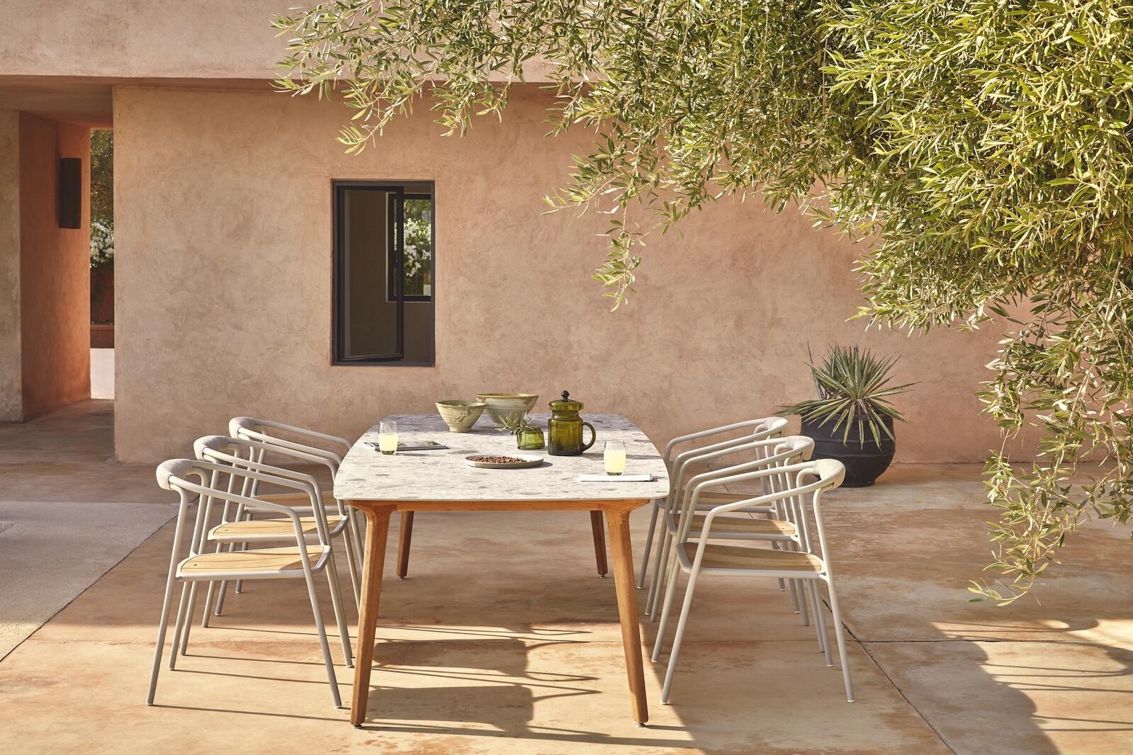 Kolekce venkovních jídelních stolů Torsa přináší lehkost a eleganci, která se přirozeně přizpůsobí vaší terase nebo zahradě. Díky sofistikované teakové podnoži s jemnými liniemi a tenké desce jídelního stolu má tato kolekce vzdušný a moderní design, který nikdy nevyjde z trendů.