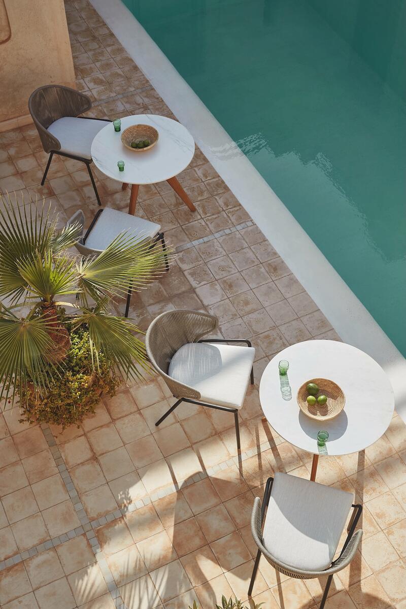 S různými výškami a velikostmi stolů si můžete vybrat ideální kousek, který dokonale doplní atmosféru vaší terasy. Vysoký barový stůl pro 12 osob je ideální pro dlouhé večery s přáteli, zatímco nižší jídelní stůl až pro 8 osob vytvoří perfektní prostor pro dlouhé snídaně nebo obědy s vaší rodinou.