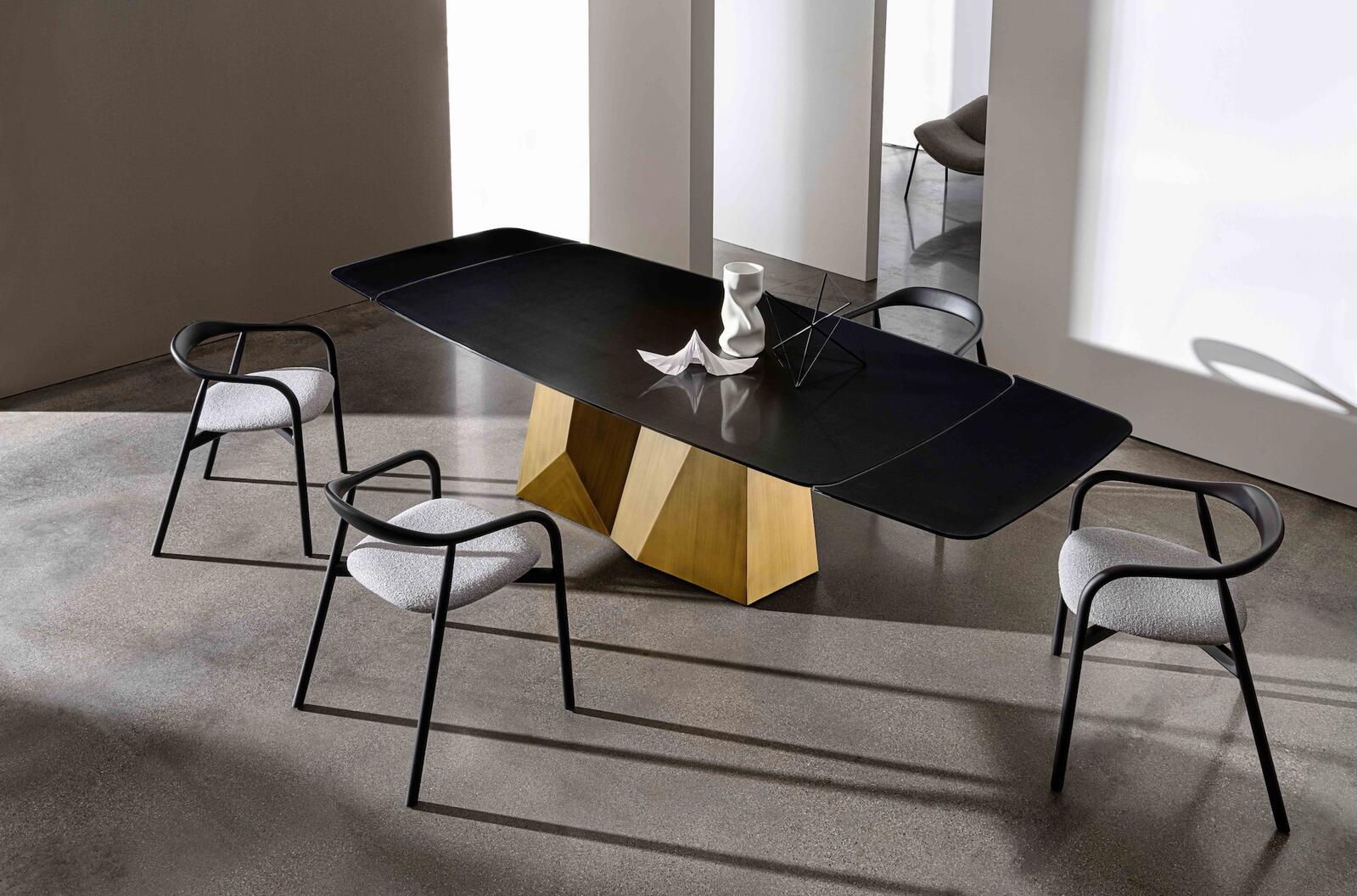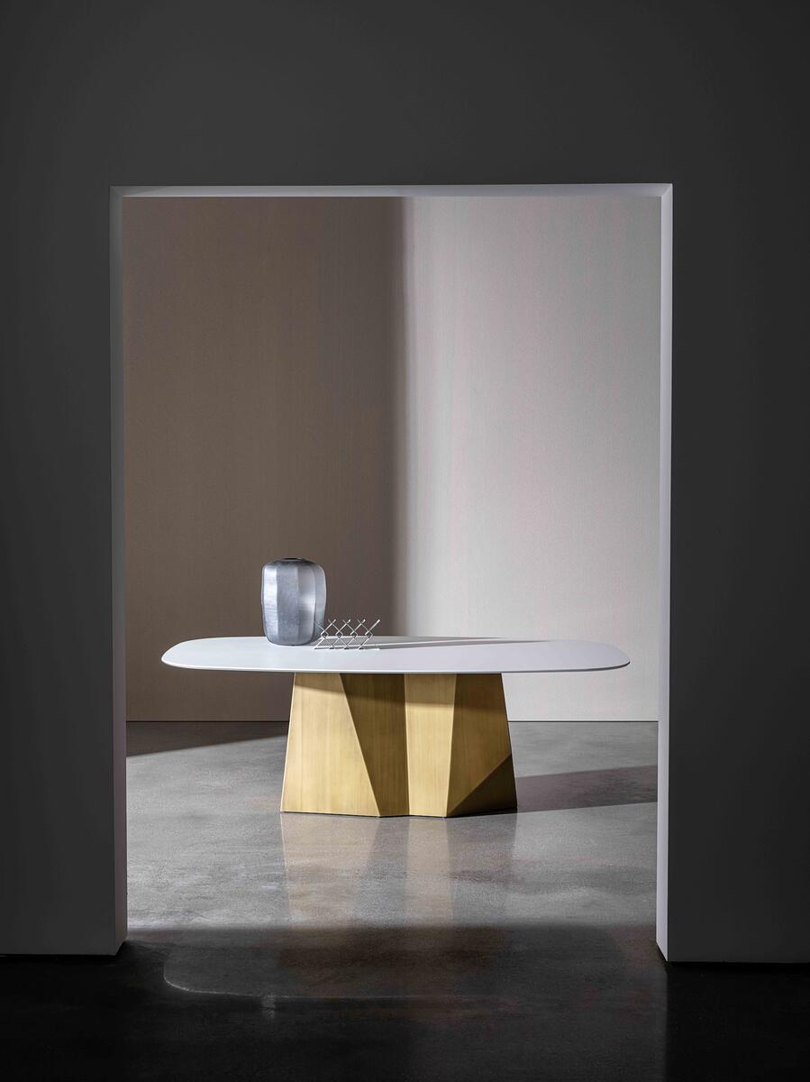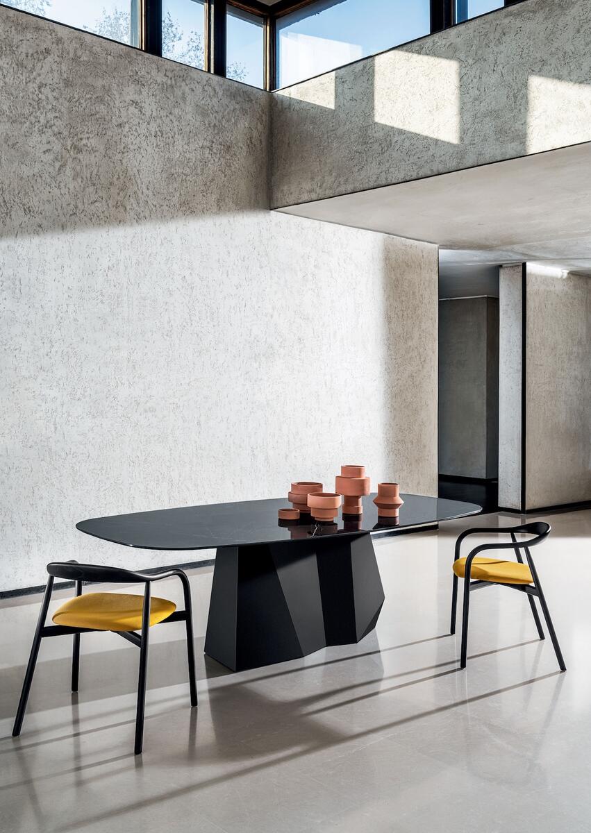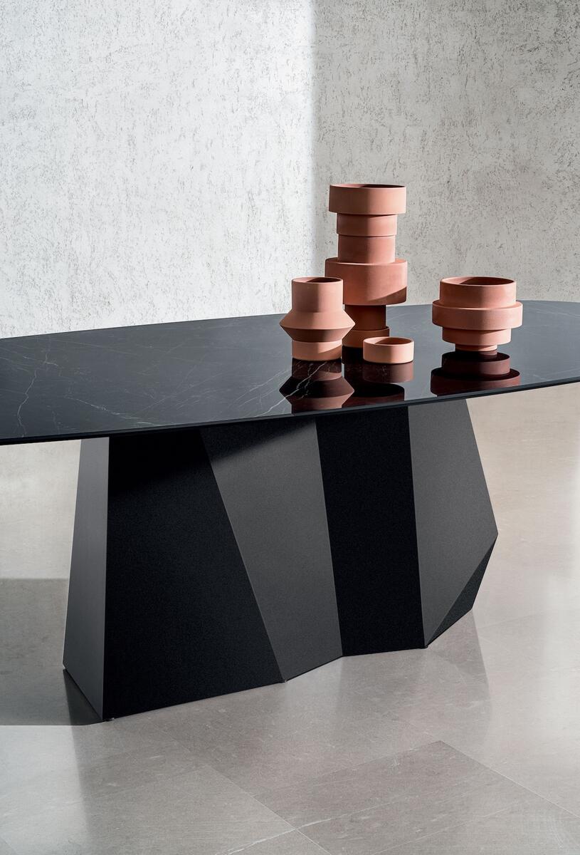 Design atypické středové podnože jídelního stolu Deod čerpá inspiraci z krásy italských Dolomit. Kovová podnož je dostupná v černé, bílé, bronzové, šedé nebo tmavě hnědé variantě.