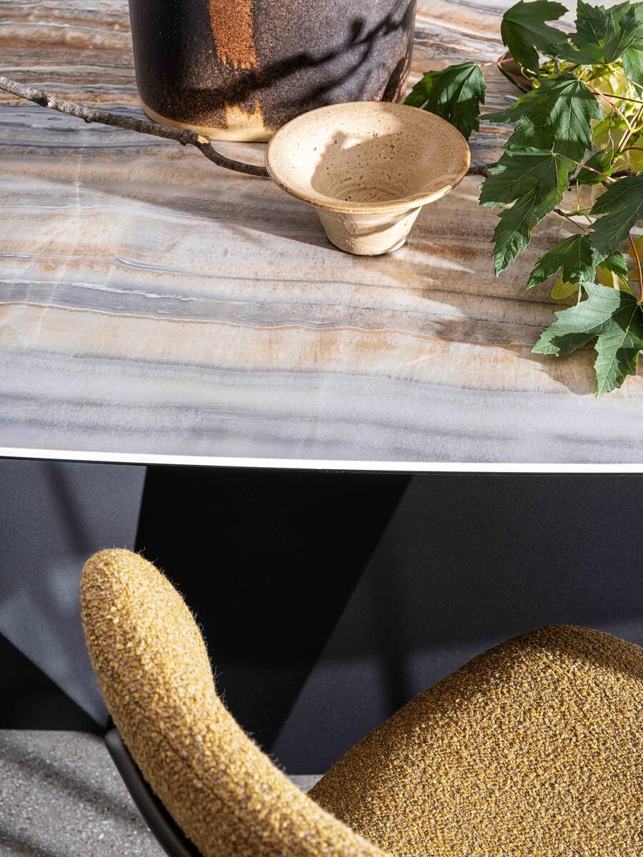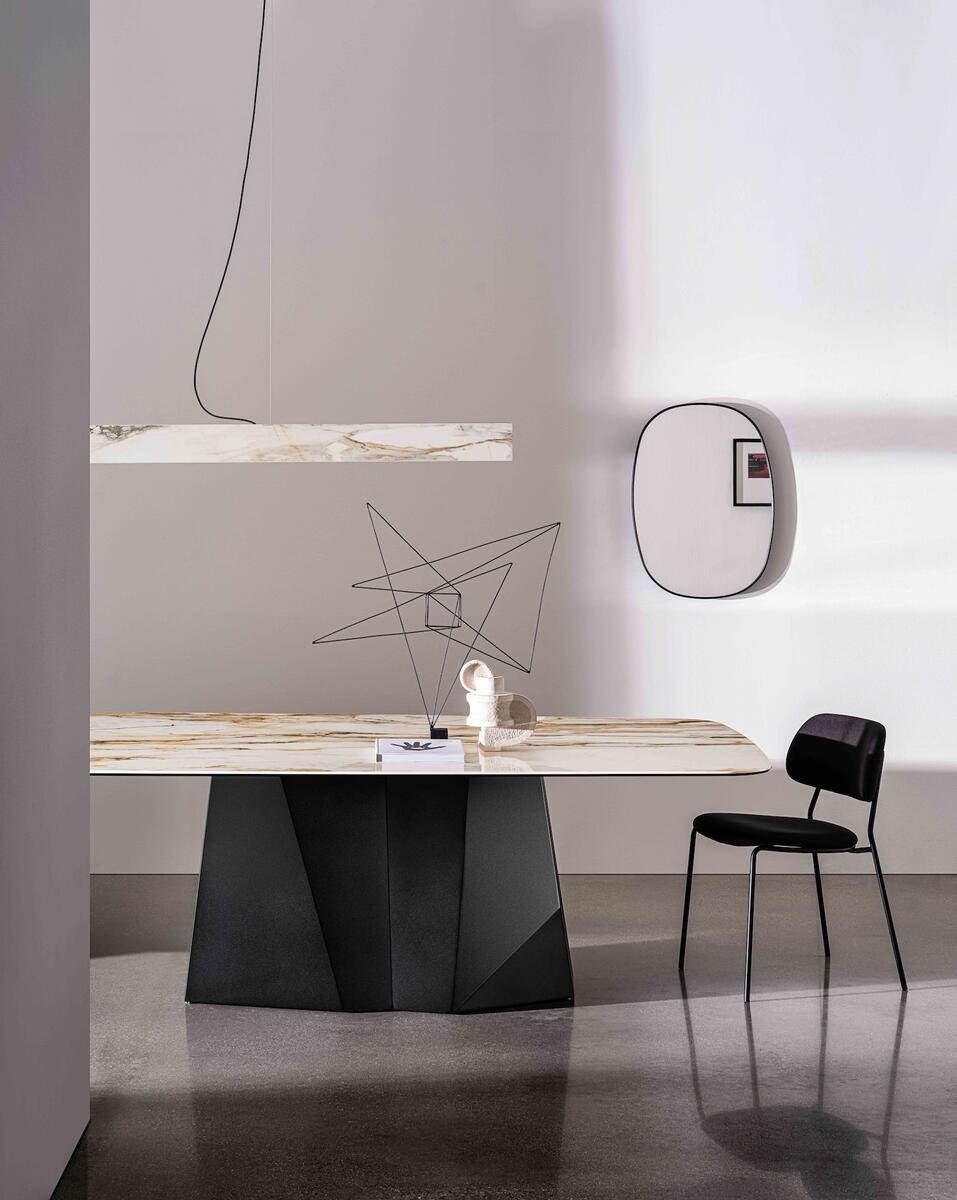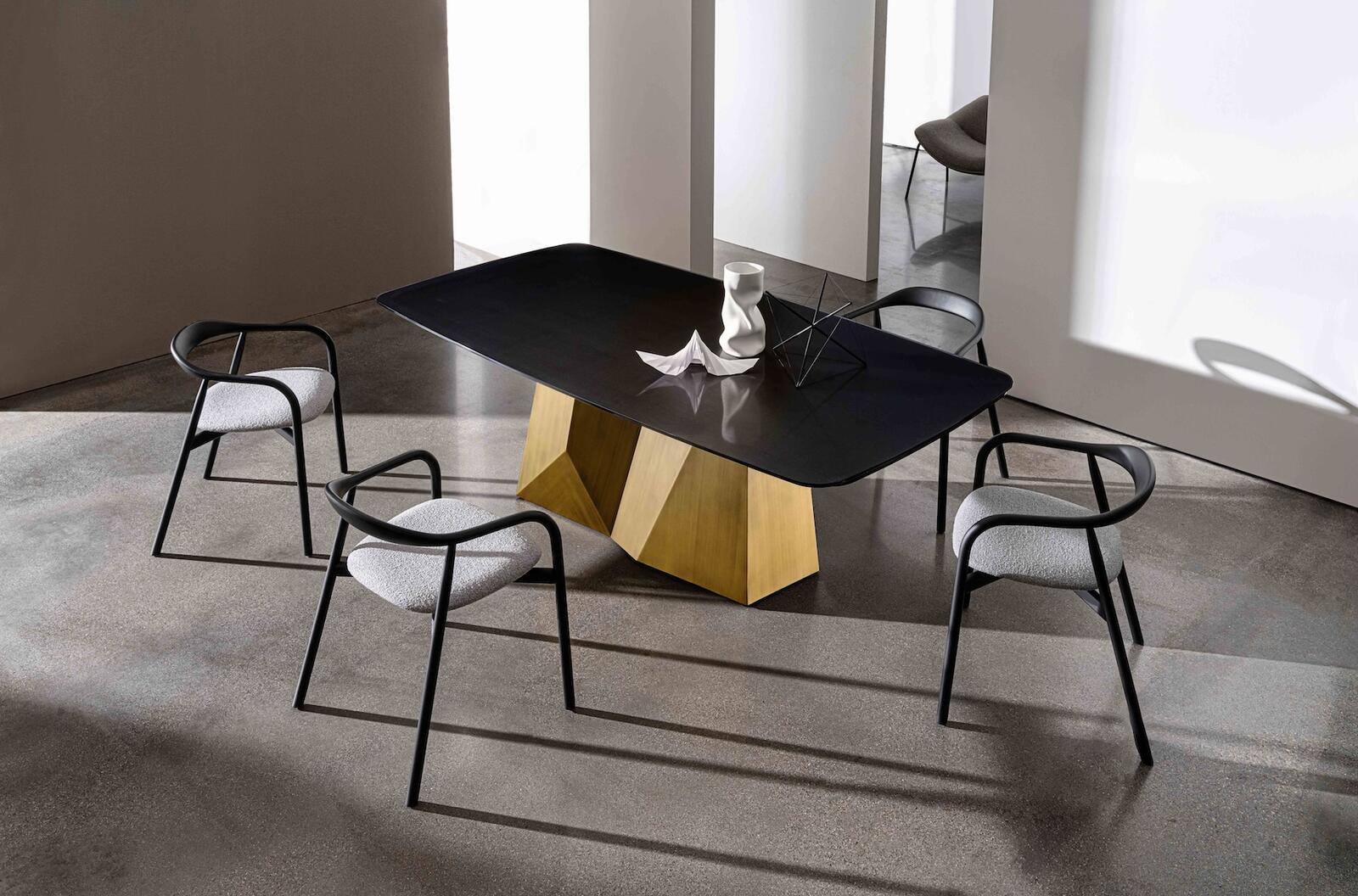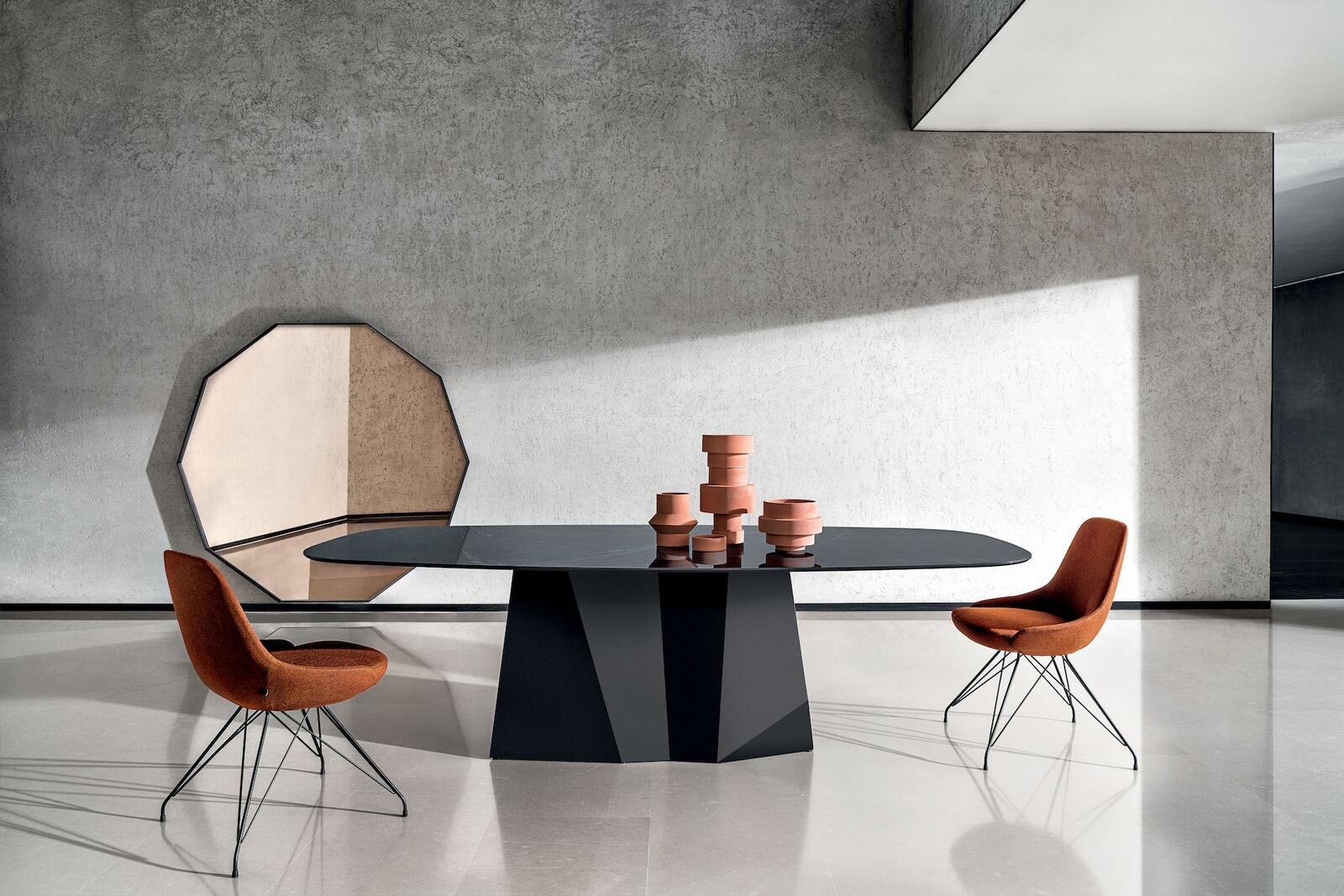 Design atypické středové podnože jídelního stolu Deod čerpá inspiraci z krásy italských Dolomit. Kovová podnož je dostupná v černé, bílé, bronzové, šedé nebo tmavě hnědé variantě.