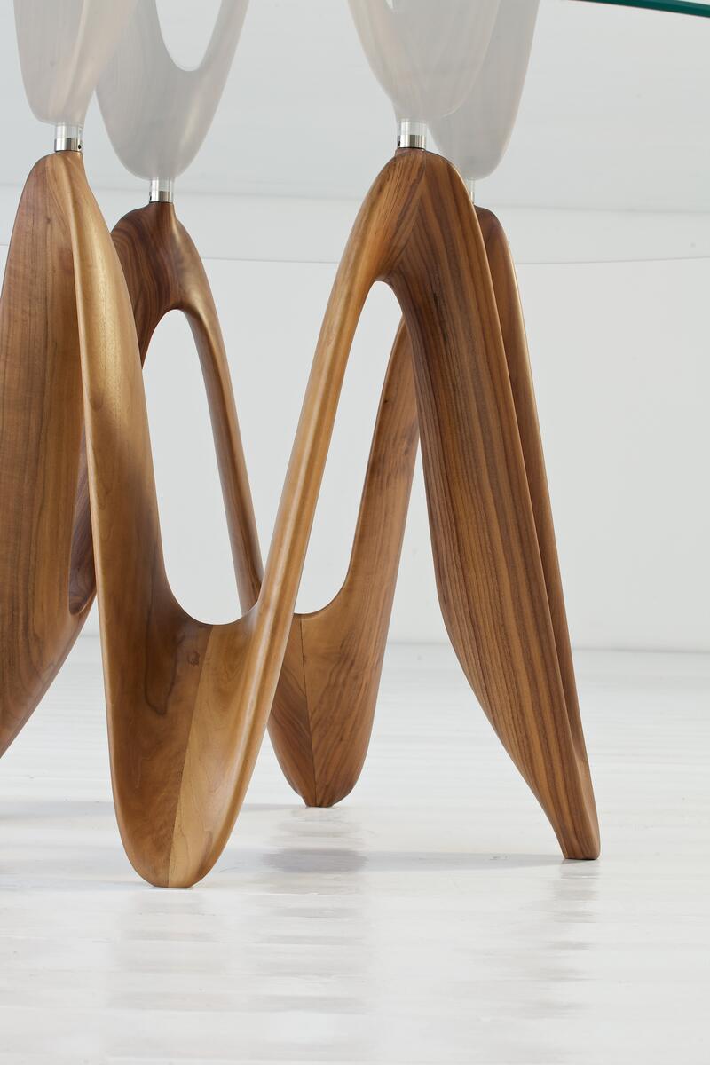 Designový jídelní stůl s atypickou středovou podnoží. Přináší mnoho tvarů a velikostí.