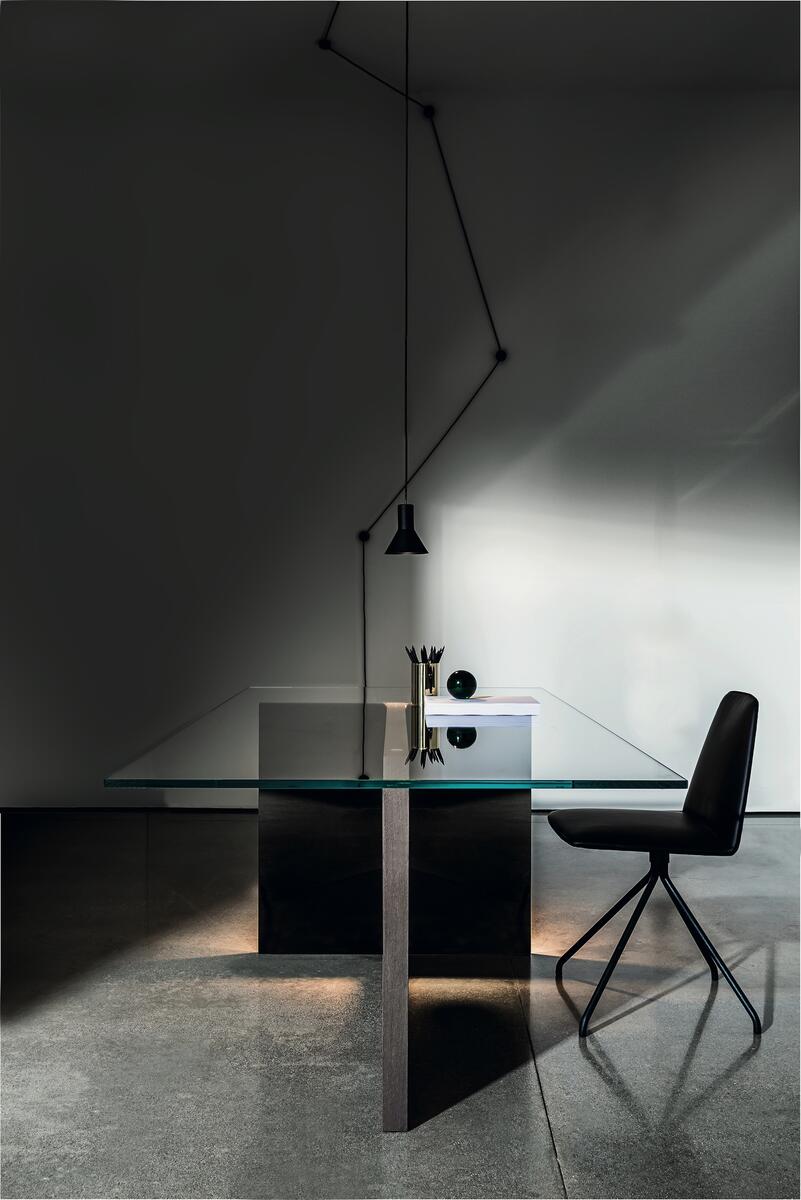 Varianta skleněné desky umožňuje přizpůsobit stůl vašemu stylu – pro čistý a klasický vzhled zvolte čiré sklo, zatímco kouřové sklo dodá interiéru sofistikovaný nádech.