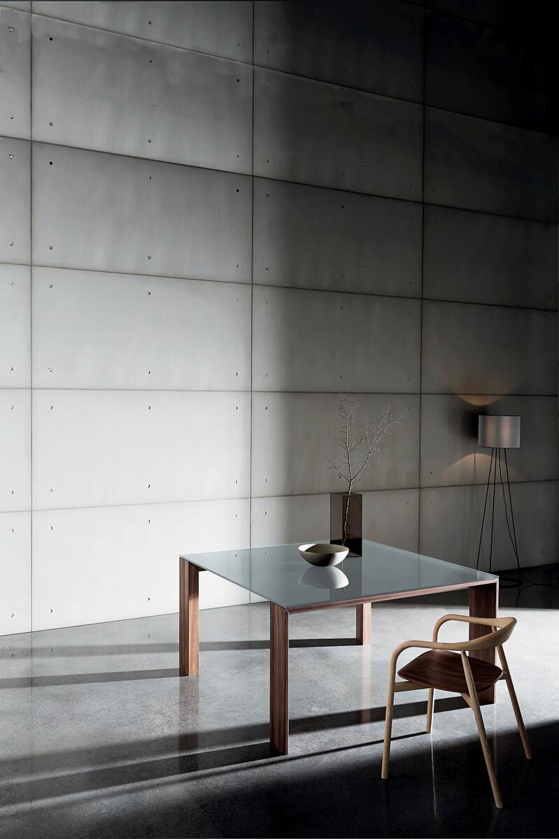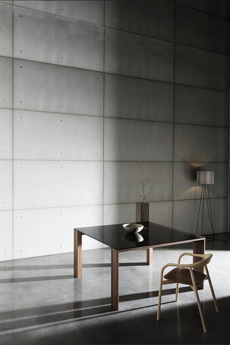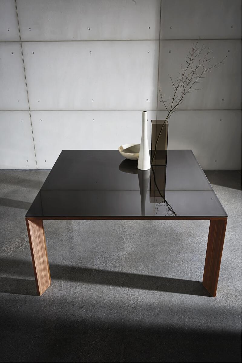 Navzdory velkým rozměrům si stůl zachovává vzdušný a minimalistický design. Speciálně tvarovaná dřevěná podnož dodává stolu subtilní a lehký vzhled.