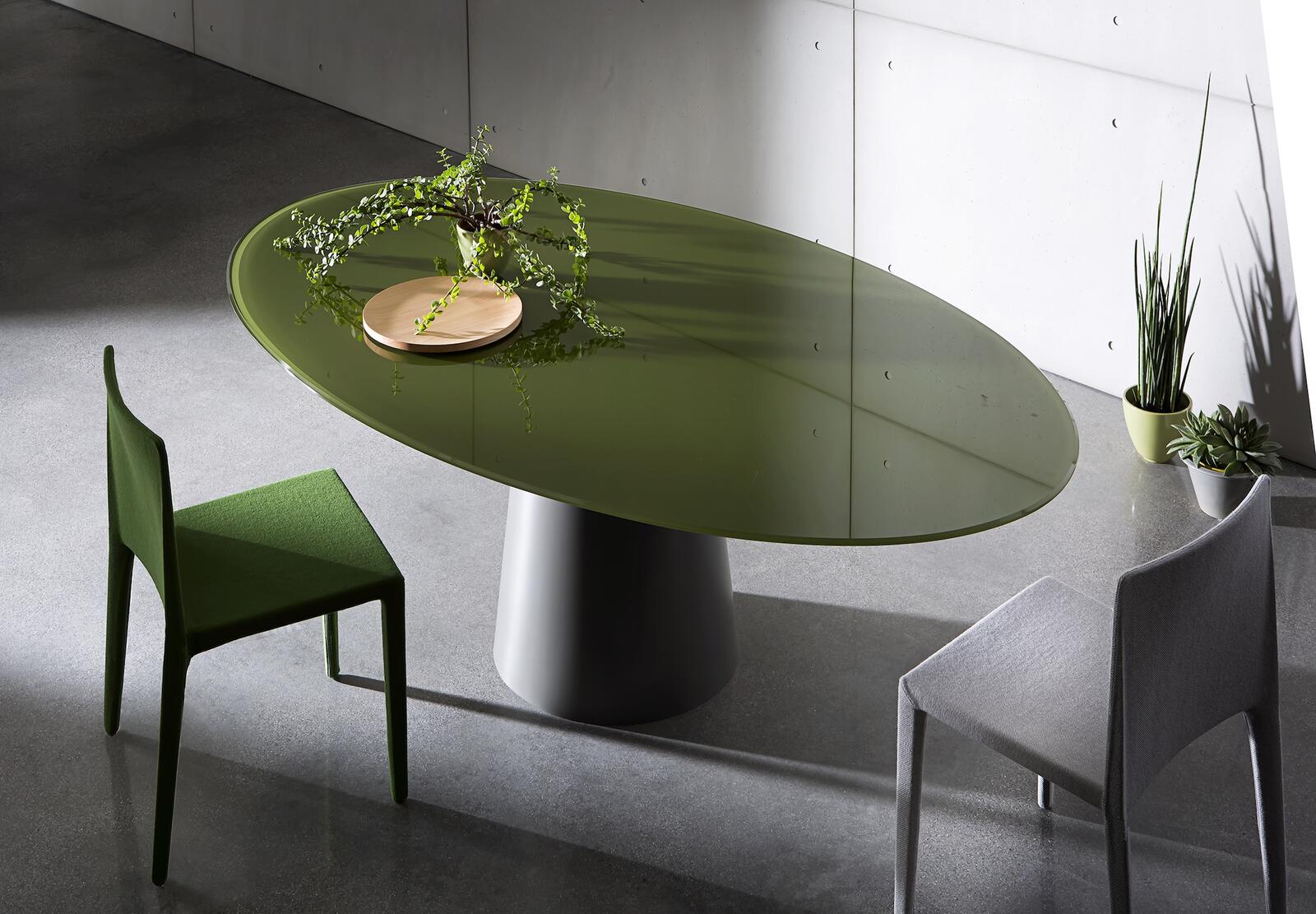 Kolekce jídelních stolů Totem nabízí širokou škálu variant pro dokonalý jídelní stůl. Nadčasový design středové podnože, který dokonale ladí s aktuálními interiérovými trendy, je ideálním doplňkem do domácností i restaurací nebo bister.