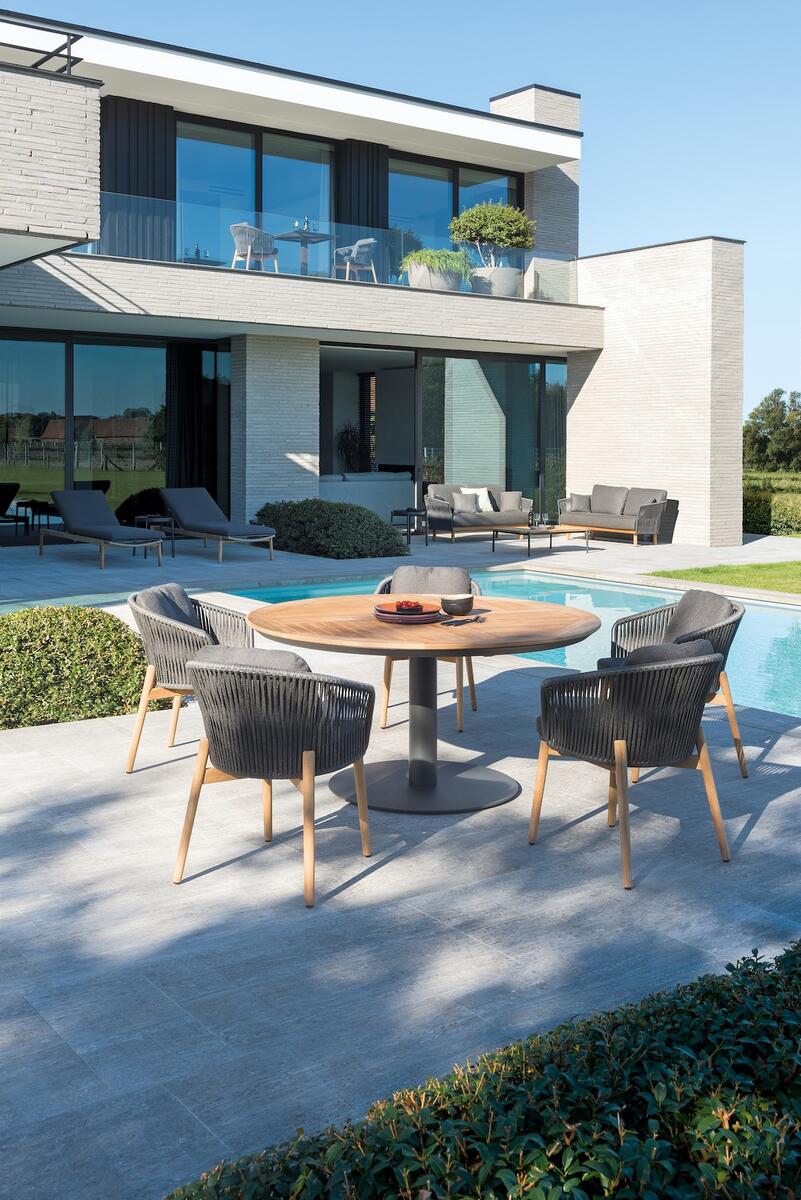 Díky svému nadčasovému vzhledu se snadno kombinuje s různými venkovními jídelními stoly. K dispozici je v několika barevných variantách, takže si snadno vyberete tu pravou pro svou terasu, zahradu nebo hotelovou restauraci.