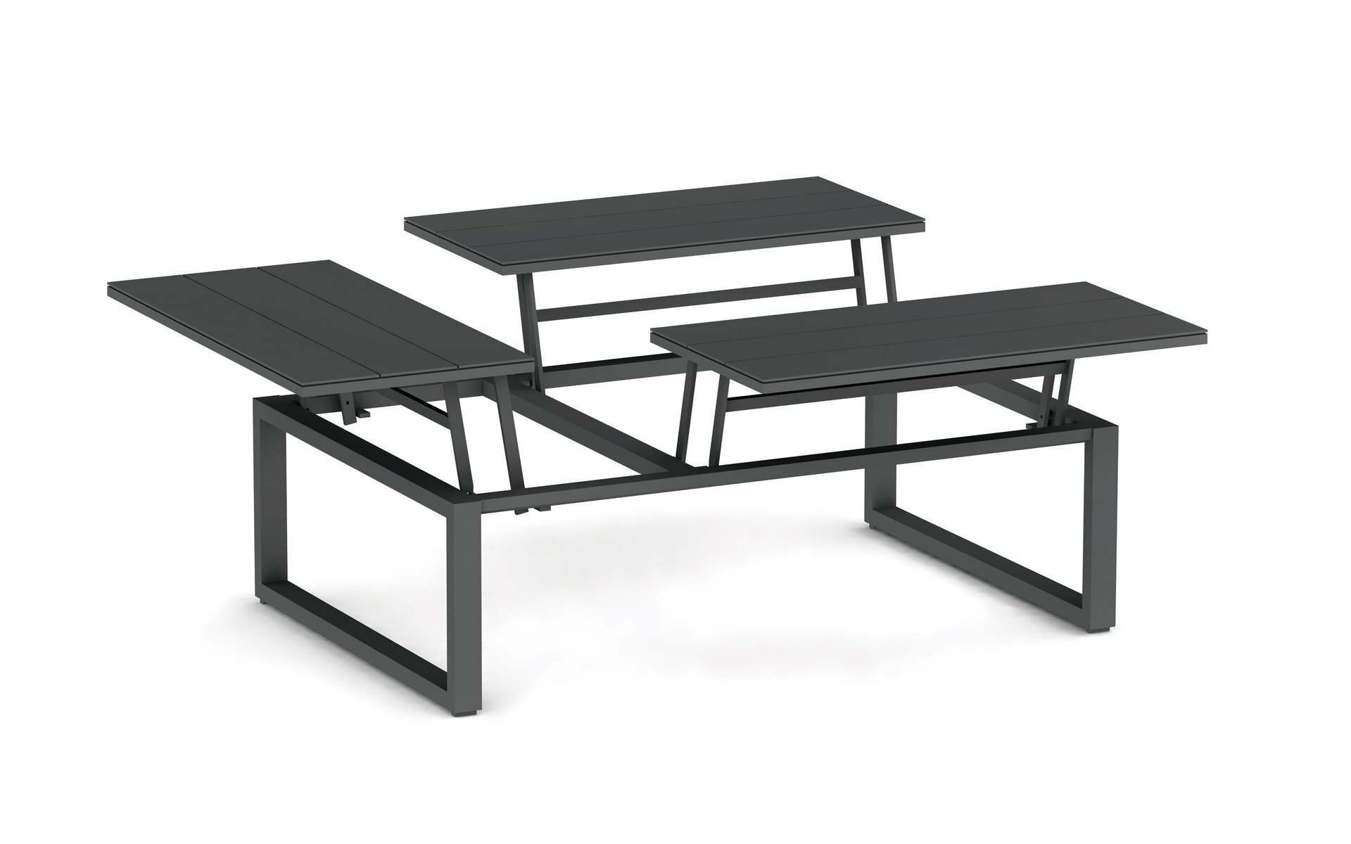 Praktický venkovní konferenční stolek. Nastavitelné výšky odkládací plochy pro komfortní stolování.
