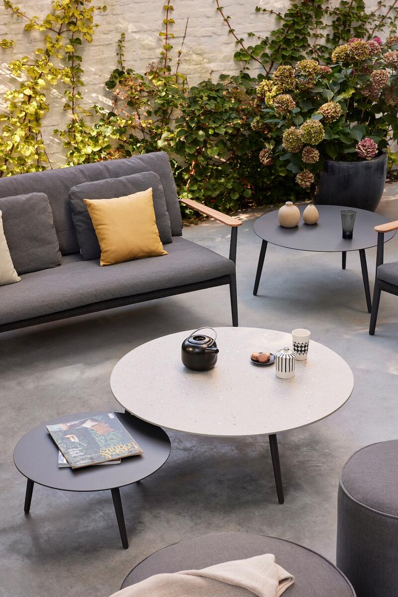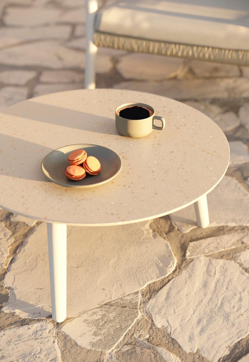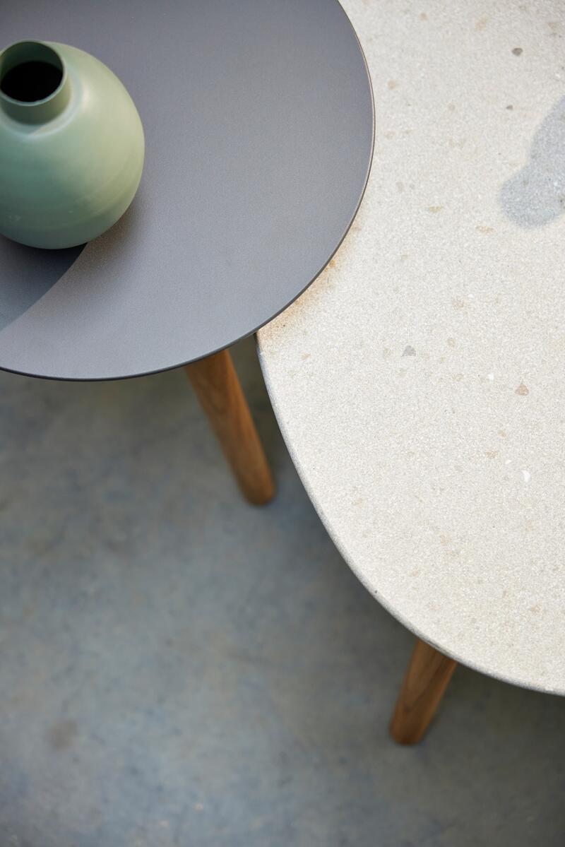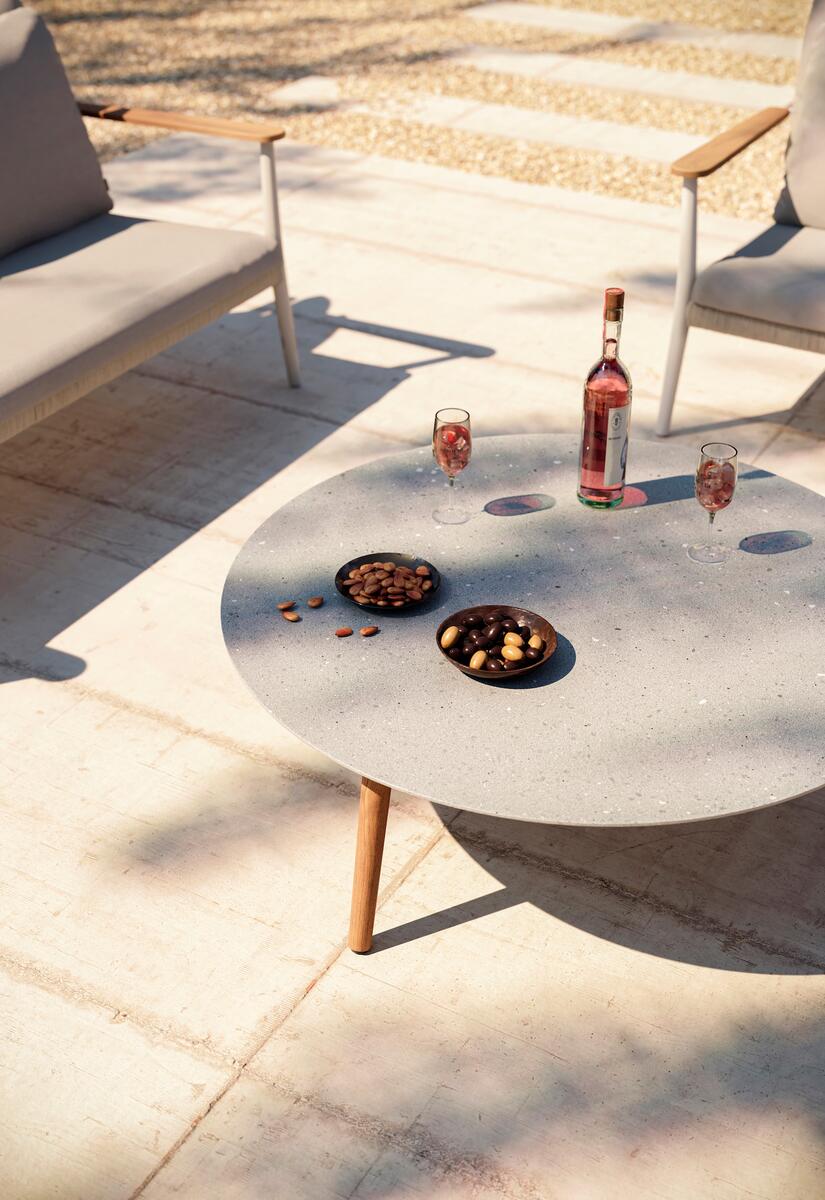 Kulatý venkovní konferenční stolek Ray je ideální volbou pro terasu, balkon i zahradu. Jeho odolná hliníková nebo teaková konstrukce zajišťuje dlouhou životnost a stabilitu. Stolová deska je dostupná v několika provedeních – od elegantní keramiky po praktický hliníkový povrch, který se snadno udržuje.