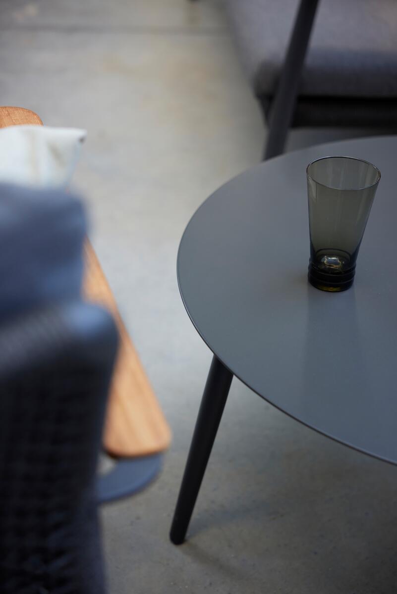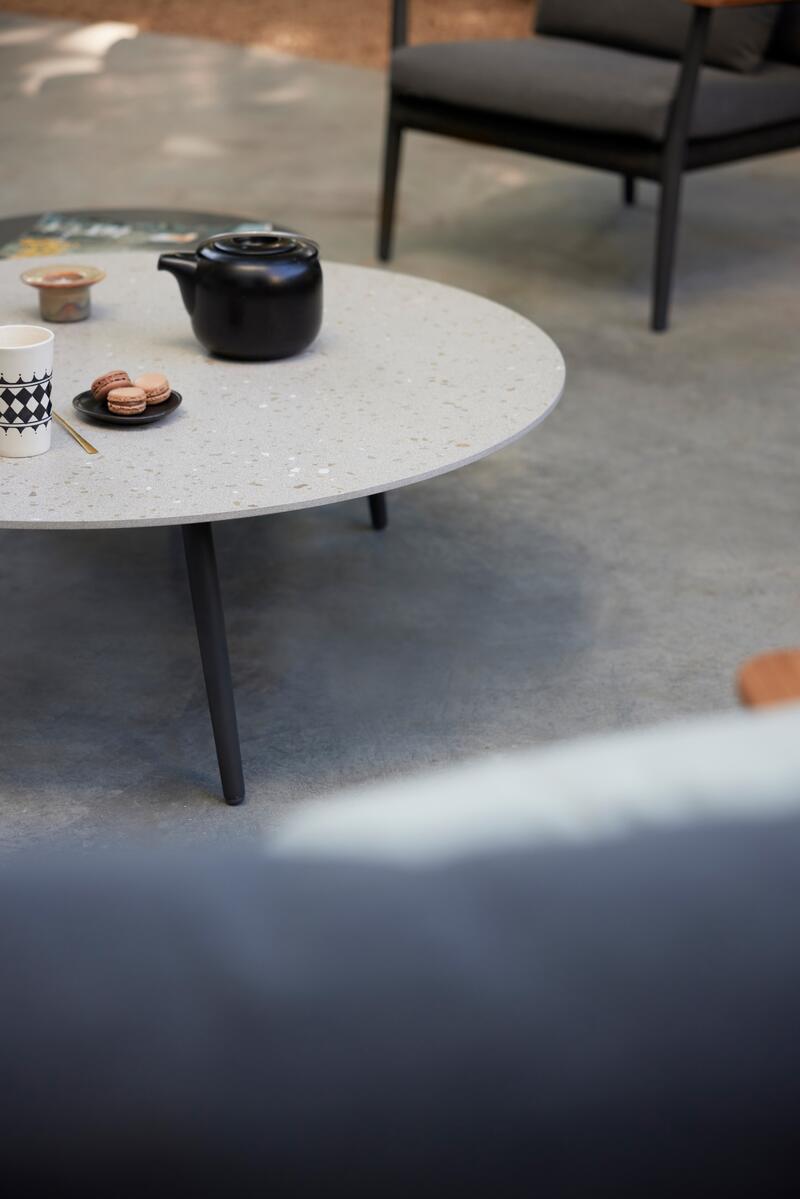 Moderní kulatý konferenční stolek (⌀100 cm) na terasu, balkon i zahradu.