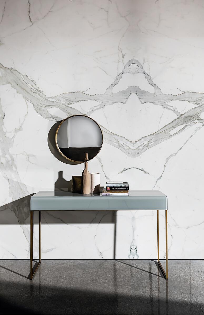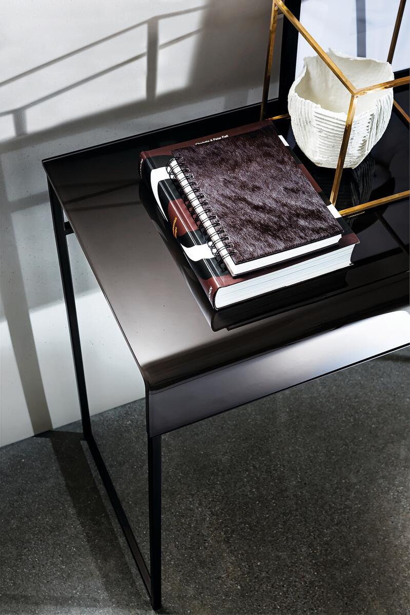 Skleněná konzole je navíc ideální jako pracovní stůl do pokoje pro hosty, který spojuje funkčnost s moderním designem.