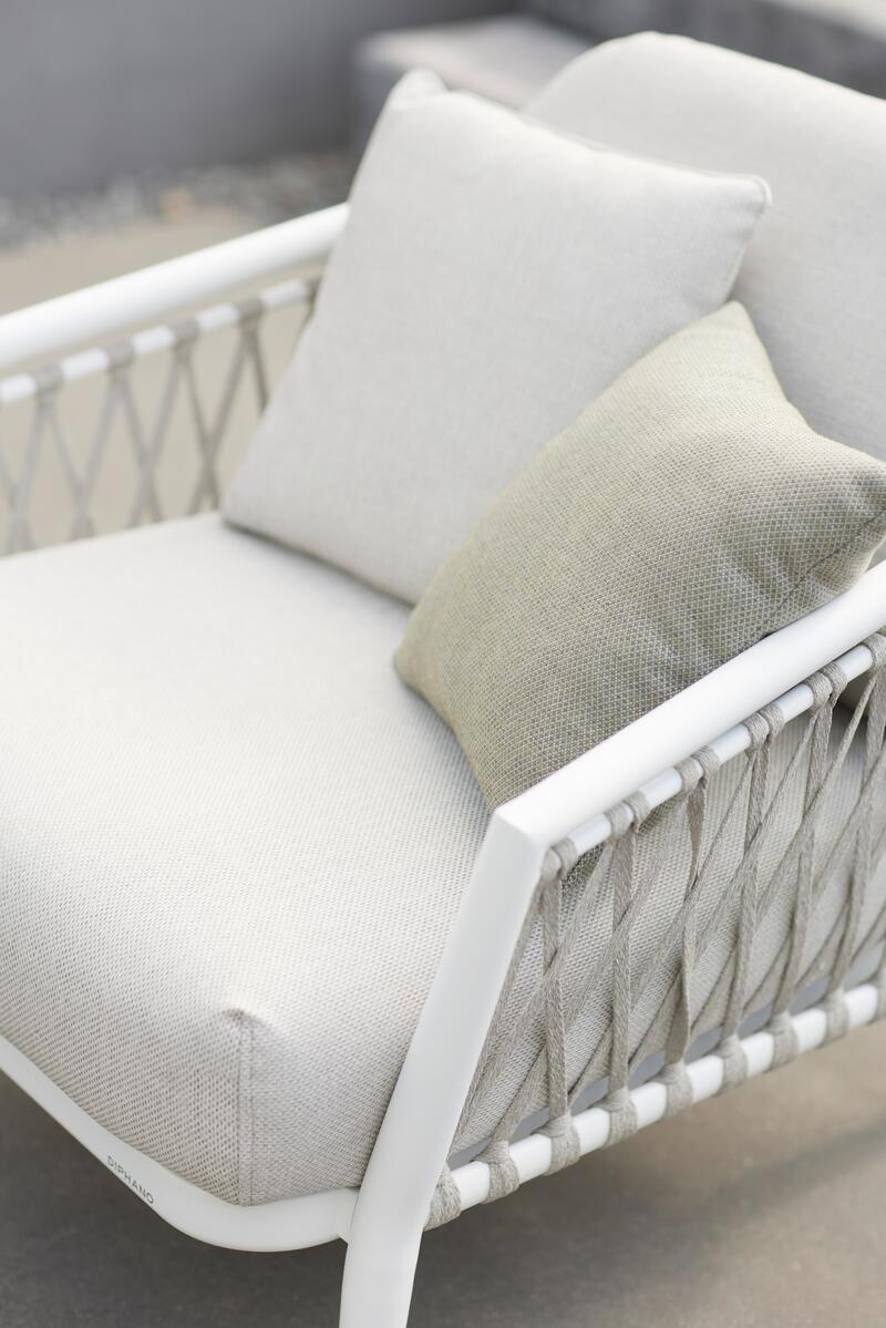 Toto venkovní lounge křeslo Diamond kombinuje sofistikovaný vzhled s maximálním komfortem. Lehká, ale pevná hliníková konstrukce odolává povětrnostním vlivům, zatímco ručně tkaný výplet dodává elegantní nádech. Ergonomický tvar zajišťuje pohodlné sezení, ať už relaxujete na zahradě, terase či u bazénu.