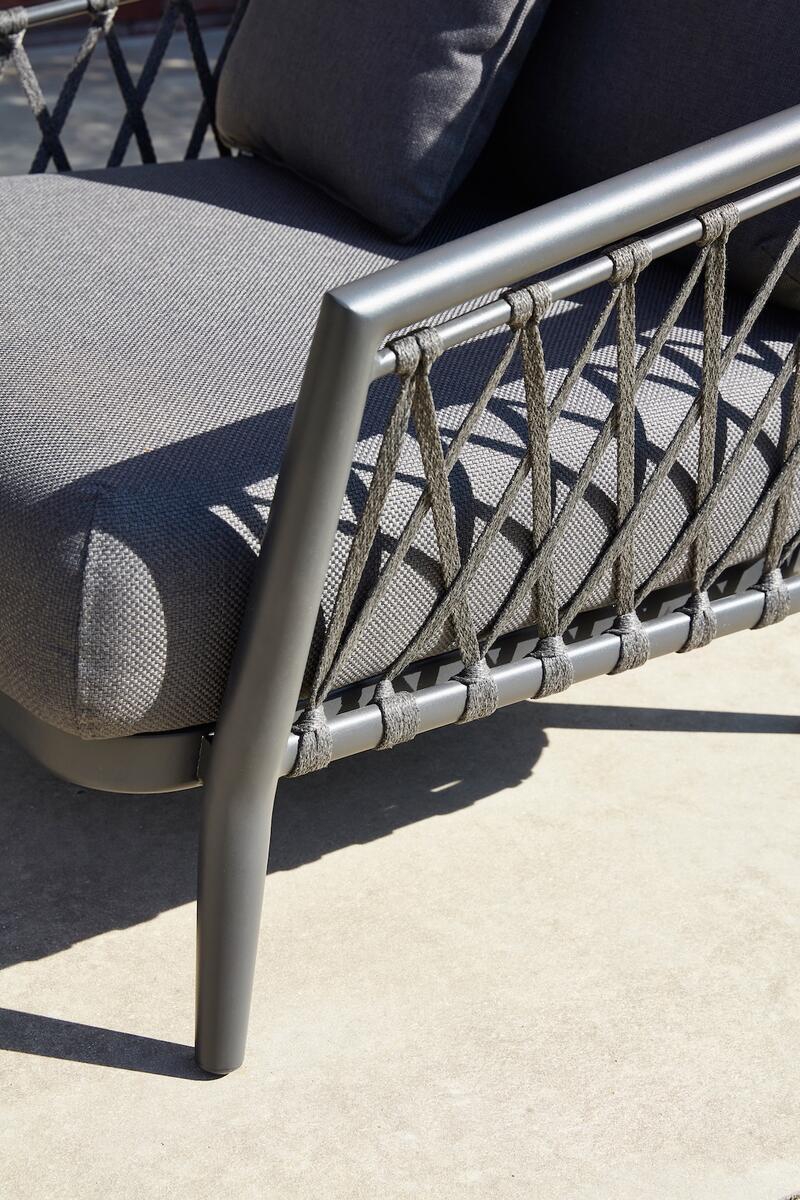 Díky odolným materiálům je toto lounge křeslo ideální pro dlouhodobé venkovní použití. Dostupné ve dvou barevných variantách pro dokonalé sladění s vaším exteriérem. Vytvořte si stylový venkovní prostor s nábytkem, který spojuje funkčnost, pohodlí a moderní design.