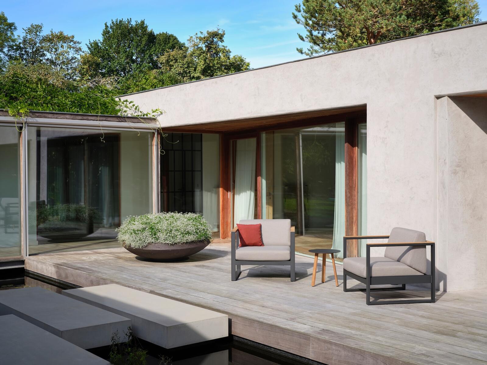 Díky dvěma různým barevným provedením se toto venkovní křeslo snadno přizpůsobí jakémukoli prostoru.