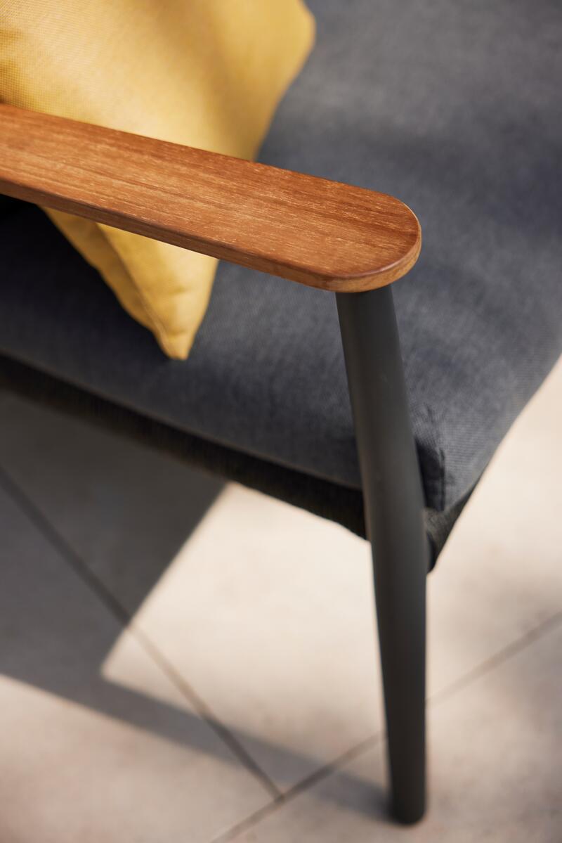 Venkovní křeslo s područkami Ray spojuje moderní design s kvalitními materiály. Teakové detaily na opěrkách dodávají nábytku přírodní eleganci, zatímco lanový výplet přidává křeslu moderní vzhled. Nízký, ale velmi pohodlný posed je ideální pro odpočinek a relaxaci. Model nabízí dvě barevné varianty.