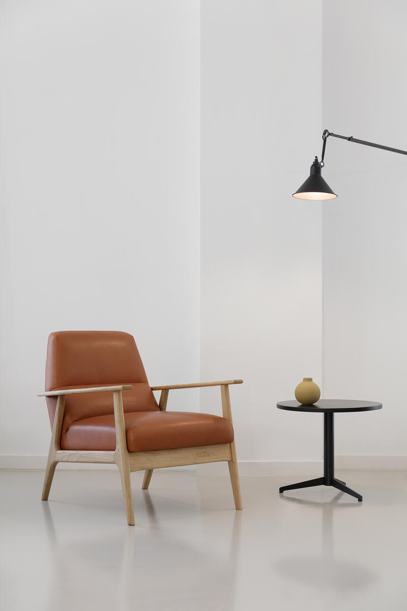 Díky koženému čalounění a dřevěným područkám je vhodné jako kancelářské křeslo. Vybírat můžete z přírodního dřeva nebo černé dřevěné konstrukce.