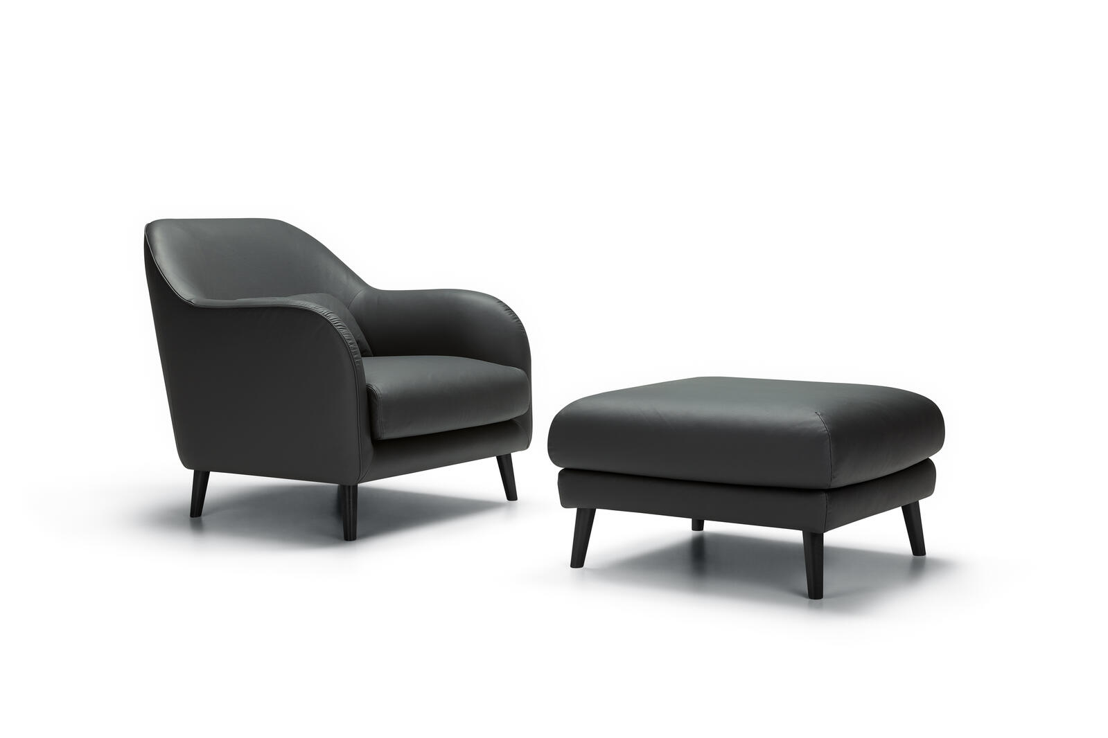 Moderní design křesla se zaoblenými liniemi. Varianta křesla s podnožníkem.