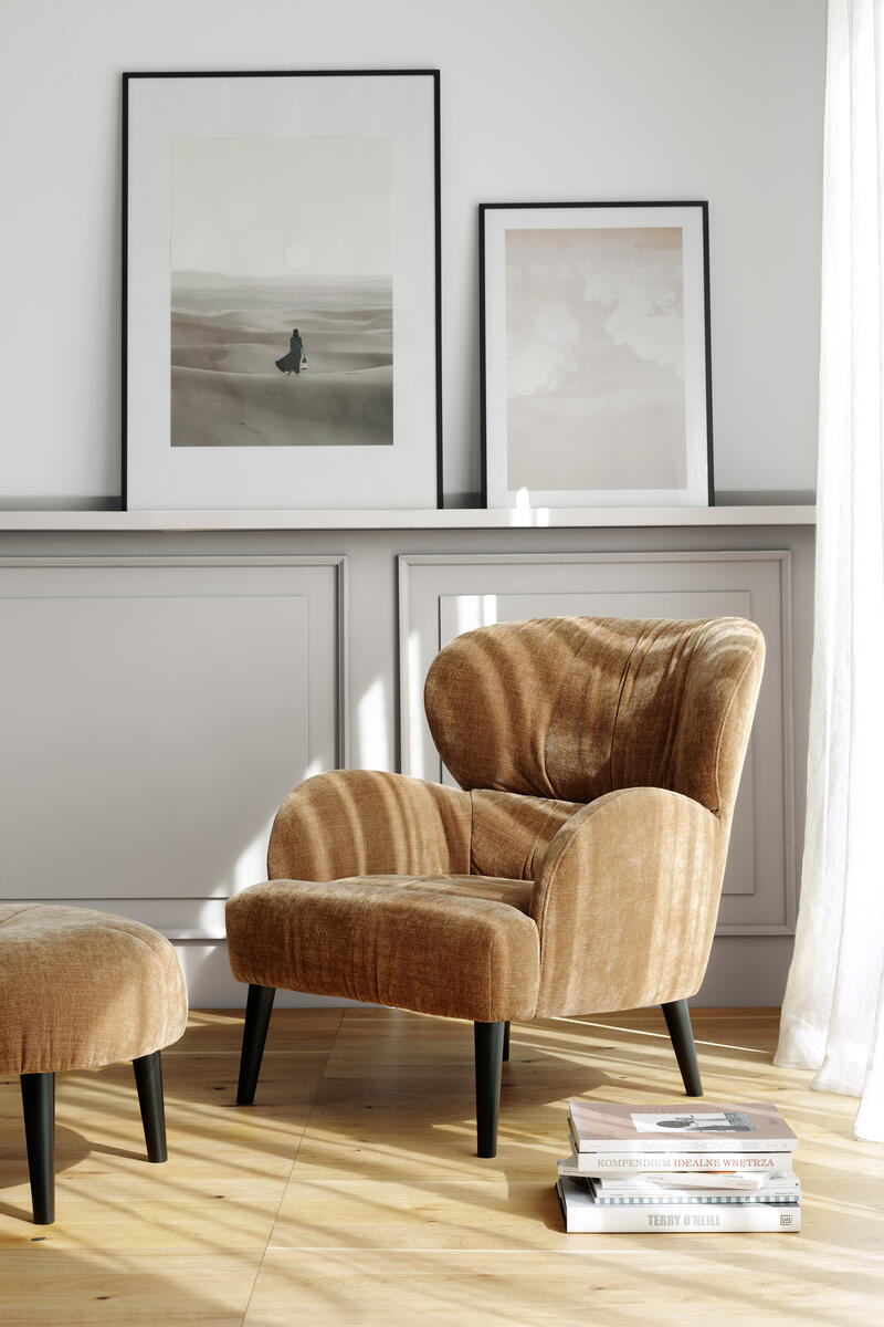 Čalouněné křeslo s područkami Ross přináší pohodlí křesla ušák a díky jeho výplni navíc naprostý komfort. V kombinaci s podnožníkem je perfektní křeslo na čtení.