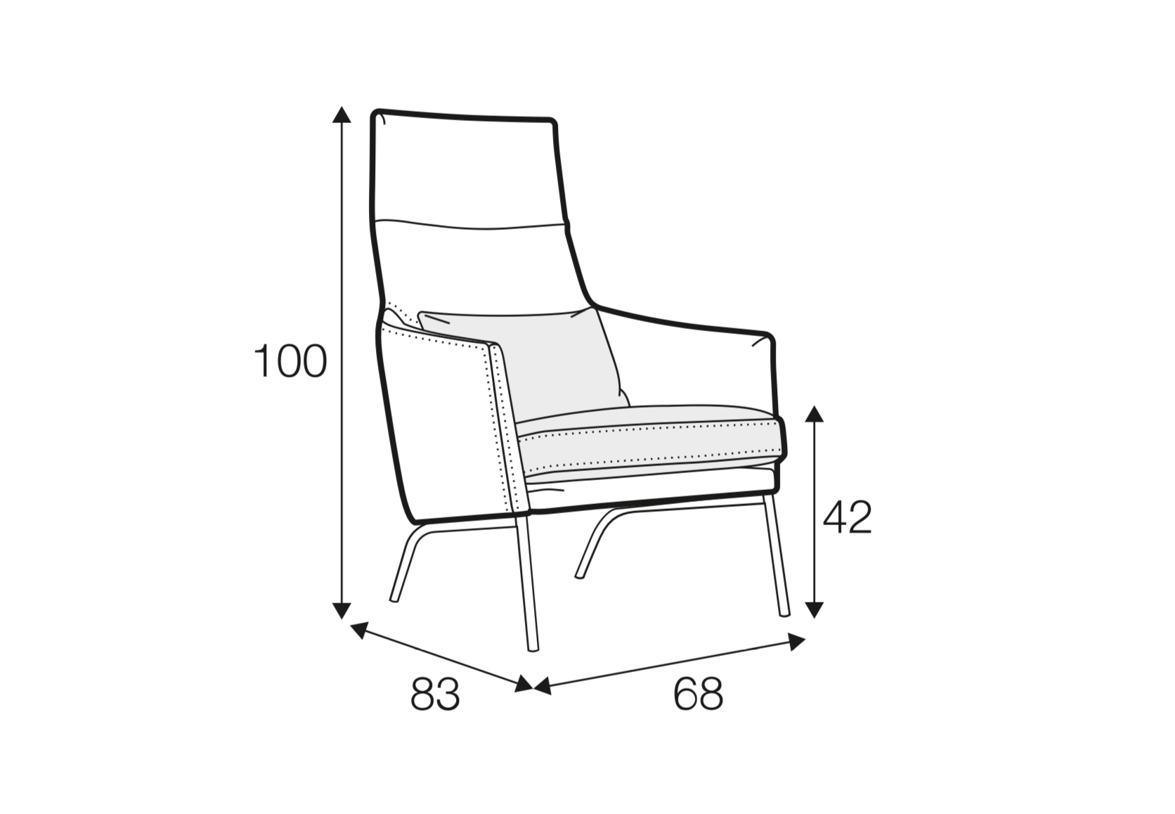 Křeslo Siri přináší pohodlí křesla ušák ale rozměry menších křesel. Díky tomu se vejde i do malometrážních bytů. Díky tenké kovové podnoži působí křeslo vzdušně.