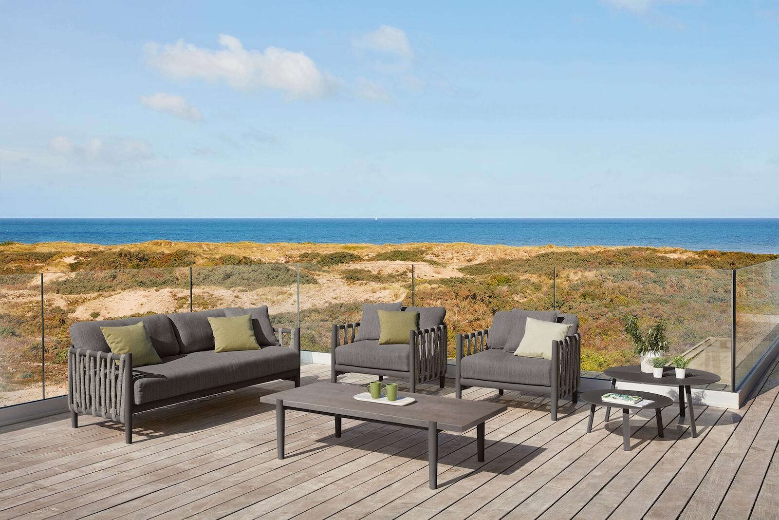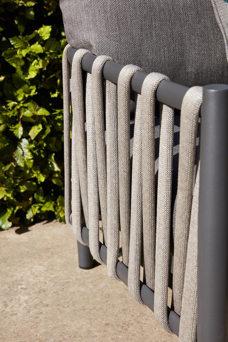 Křeslo z kolekce Switch Rope kombinuje moderní design a vysoký komfort pro venkovní odpočinek. Křeslo je vyrobeno z odolných materiálů, včetně unikátního lanového výpletu, který dodává elegantní vzhled a zároveň zajišťuje pevnost a dlouhou životnost. Lanový výplet je nejen estetický, ale i praktický, protože je odolný vůči povětrnostním vlivům a snadno se udržuje. Hliníkový rám křesla poskytuje stabilitu a pohodlí pro dlouhé hodiny relaxace. Tento kousek je ideální pro terasy, zahrady nebo venkovní lounge prostory, kde se styl a funkčnost dokonale spojují.