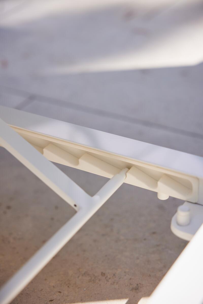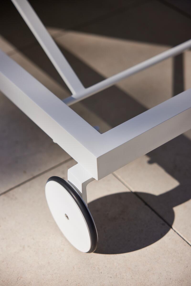 Lehký, ale pevný hliníkový rám zajišťuje snadnou manipulaci i dlouhou životnost, a kolečka umožňují lehký přesun podle potřeby. Odolné polstrování je navrženo tak, aby skvěle odolávalo povětrnostním podmínkám a bylo nenáročné na údržbu.