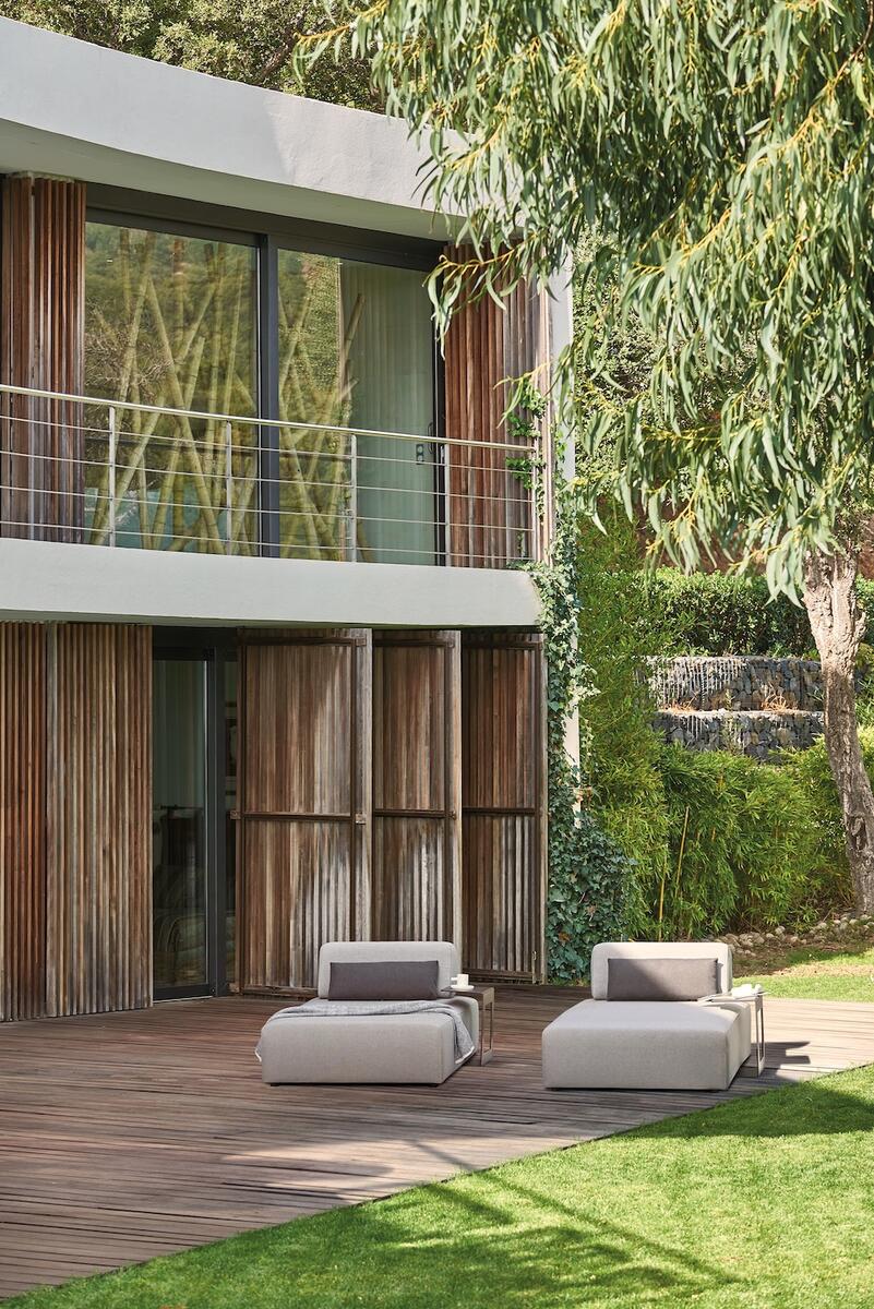 Lehátko s moderním designem a odolnými materiály. Ideální pro relaxaci na zahradě či u bazénu.