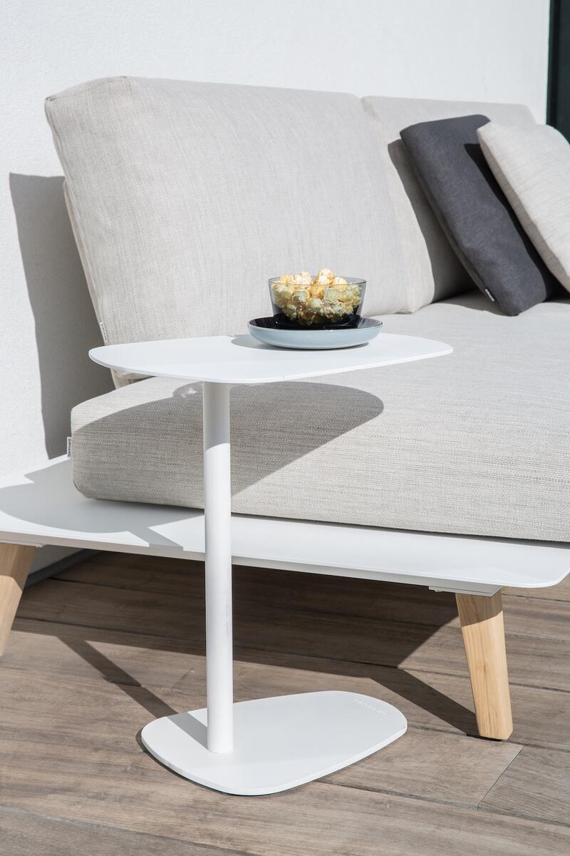 Kolekce zahrnuje stolky s hliníkovým rámem a deskami z kvalitního teaku nebo trespa desky, které zajišťují odolnost vůči povětrnostním podmínkám, snadnou údržbu a dlouhou životnost.