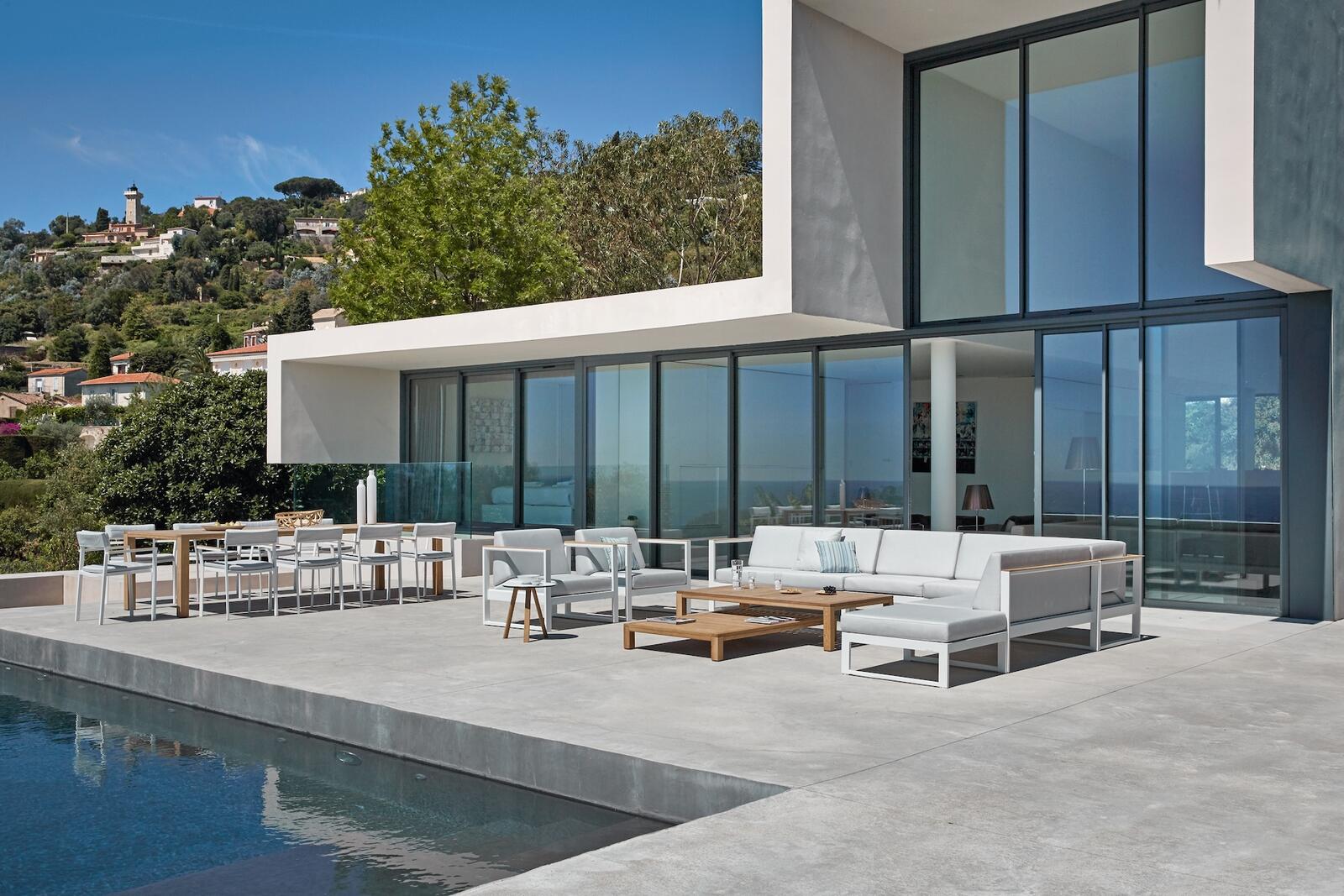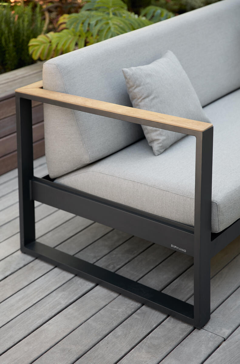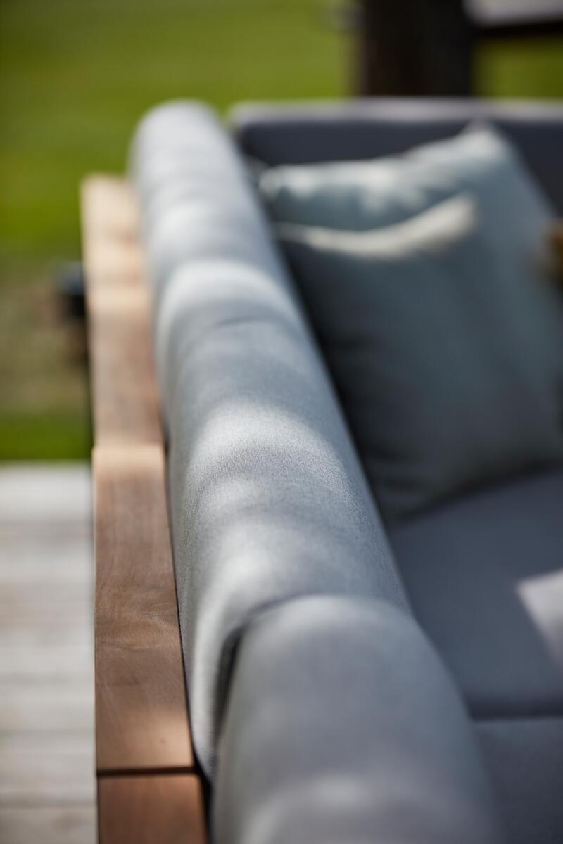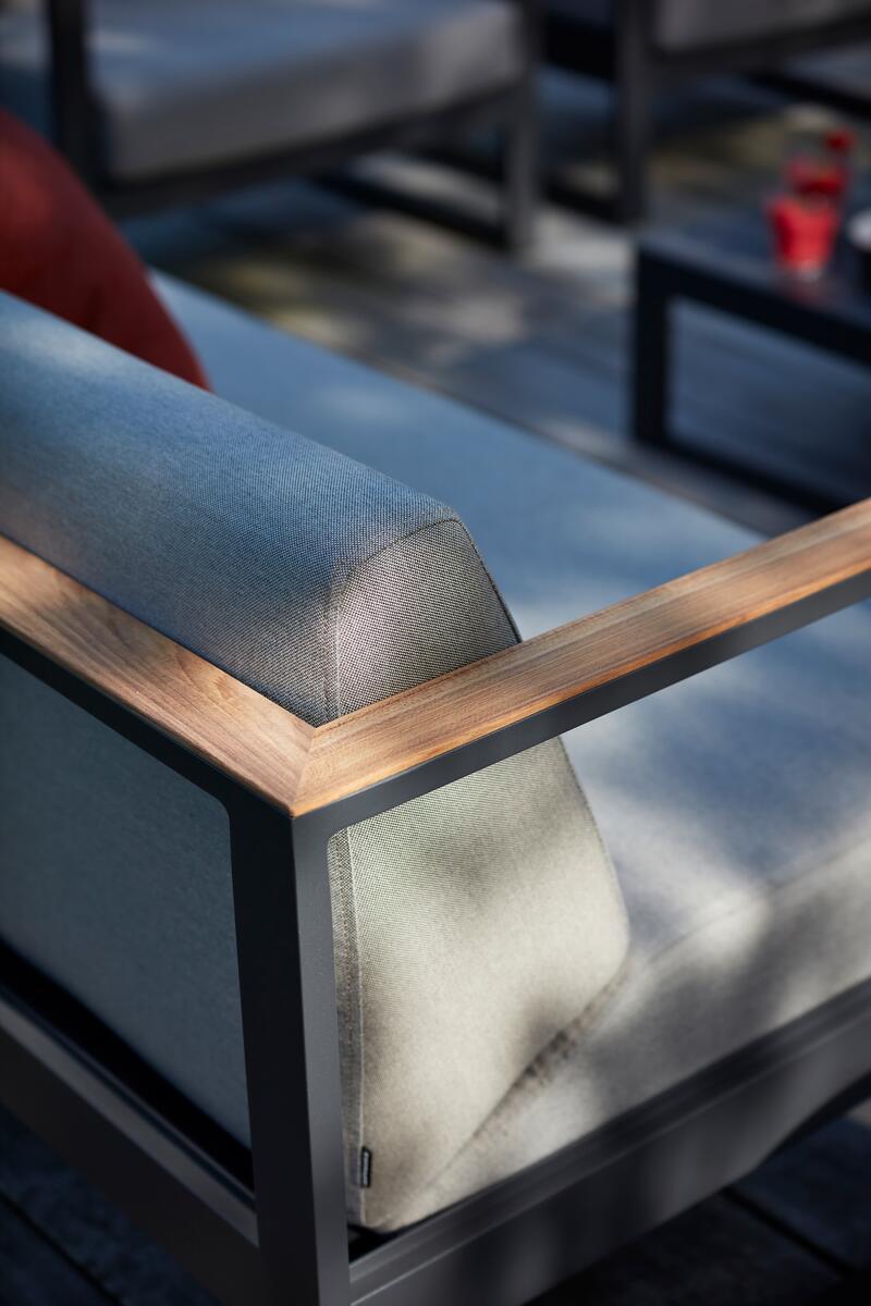 Modulární venkovní pohovka Landscape teak vyniká minimalistickým designem a čistými liniemi, které dodávají vaší terase nebo zahradě sofistikovaný a moderní vzhled. Detail teakového dřeva dodává nábytku nejen elegantní vzhled, ale také příjemný pocit útulnosti. Kvalitní a lehká hliníková konstrukce zaručuje snadnou manipulaci a zároveň poskytuje dlouhodobou odolnost a výdrž.