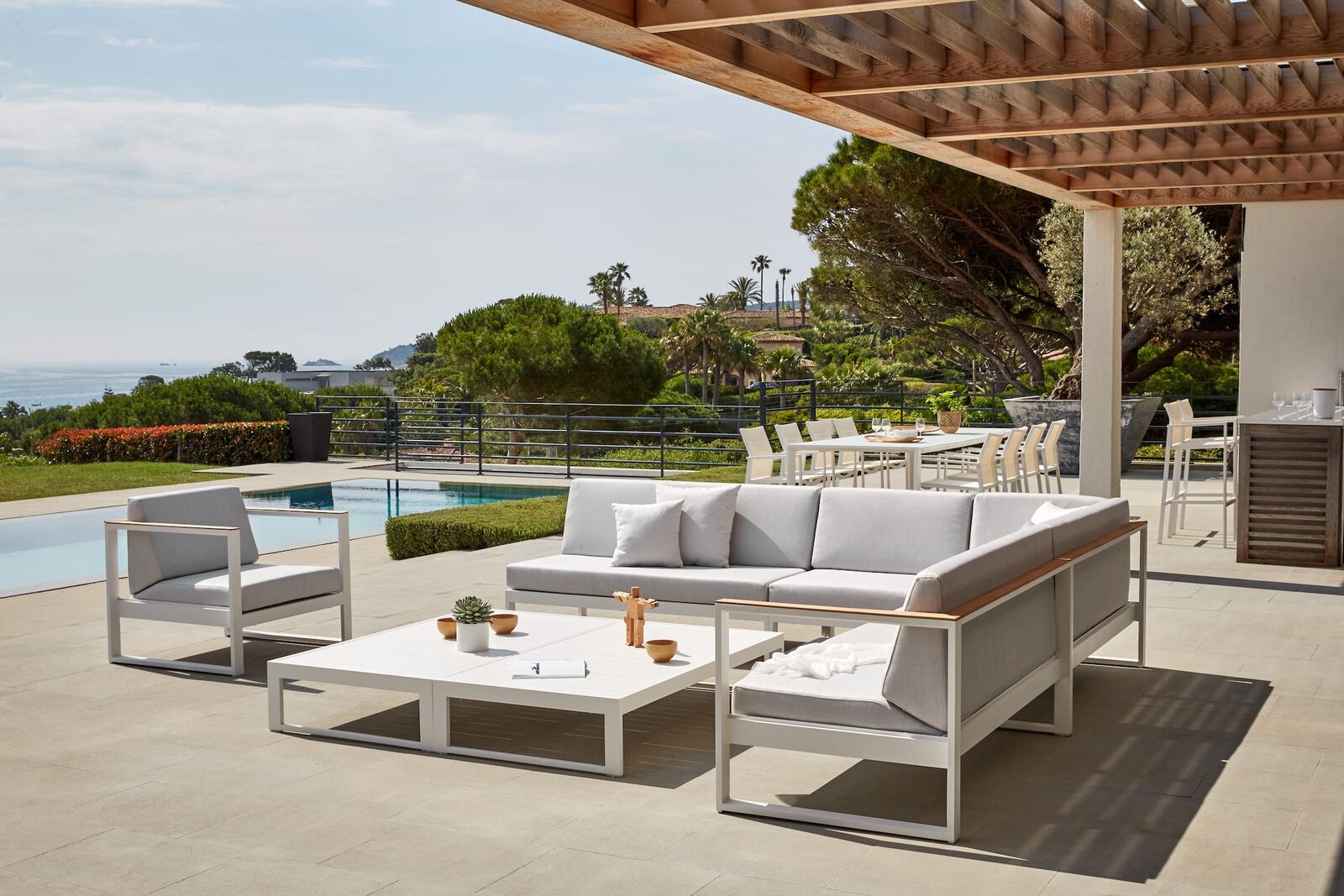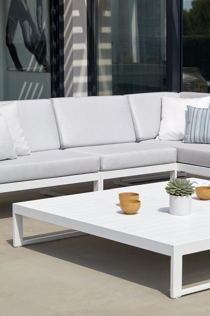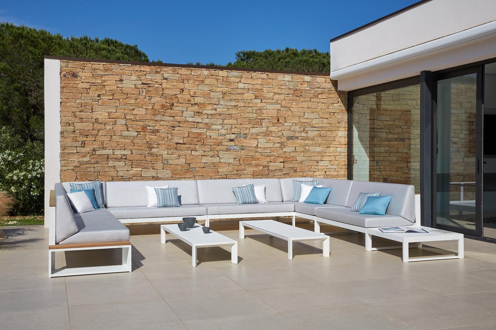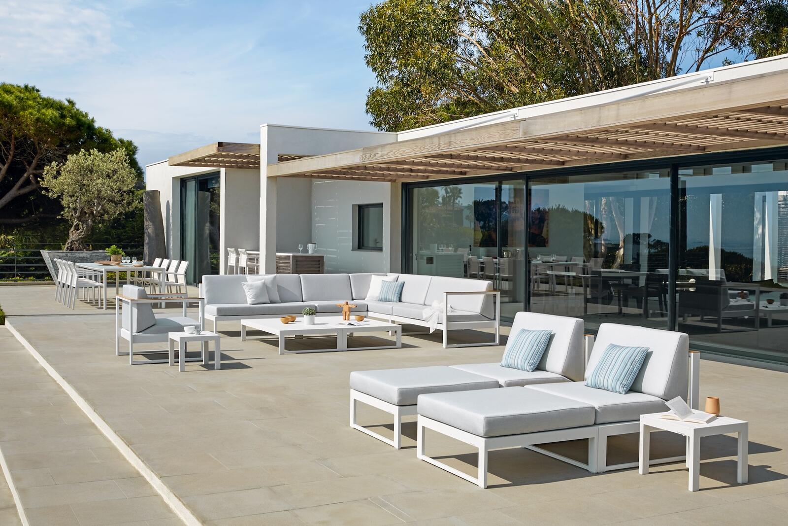 Dvě barevné varianty a různé moduly umožnují sestavit pohovku, která se přizpůsobí na míru vaší terase. Sestavit můžete rohovou sedačku, sedačku do tvaru L nebo sedačku s lenoškou. K dispozici je i pohovka pro 3 osoby.