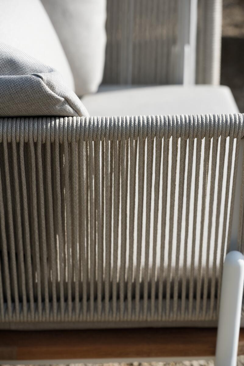 Třímístná venkovní pohovka Omer nabízí moderní design a vynikající komfort. Lehký hliníkový rám doplňují široké polštáře, které poskytují optimální pohodlí pro relaxaci na terase, zahradě nebo v komerčních prostorech. Moderní výplet lanem podtrhuje design pohovky a dodává mu aktuální trendy v nábytku.